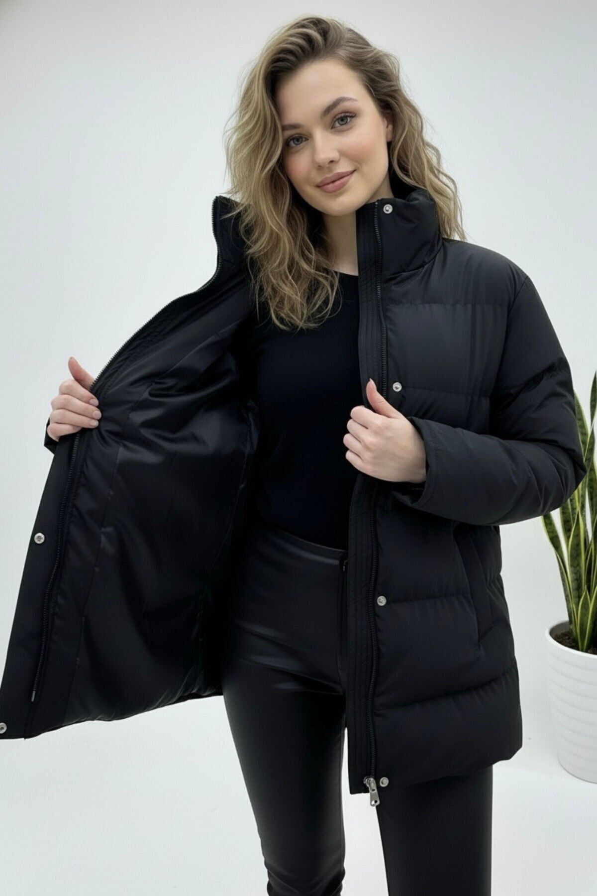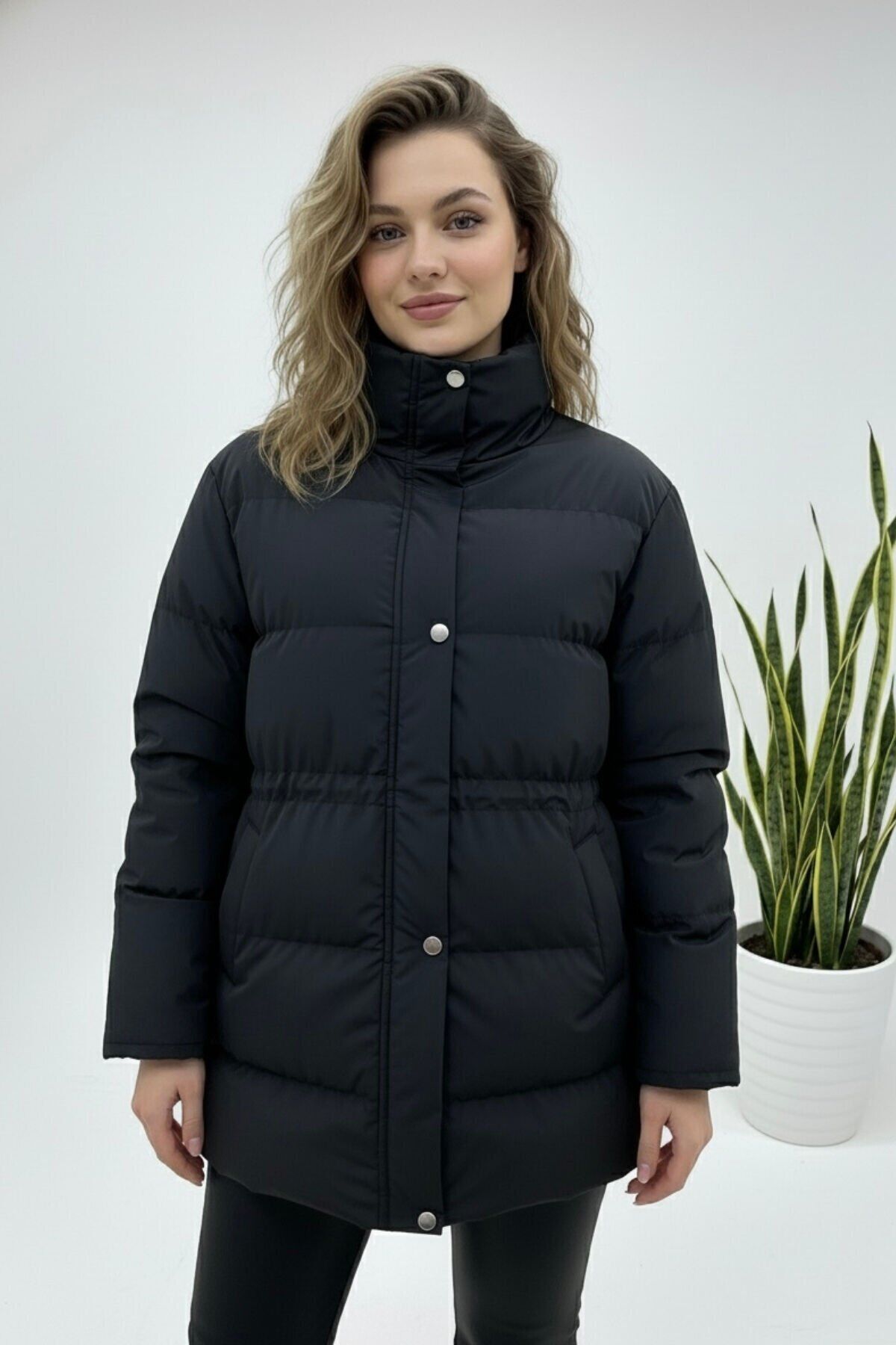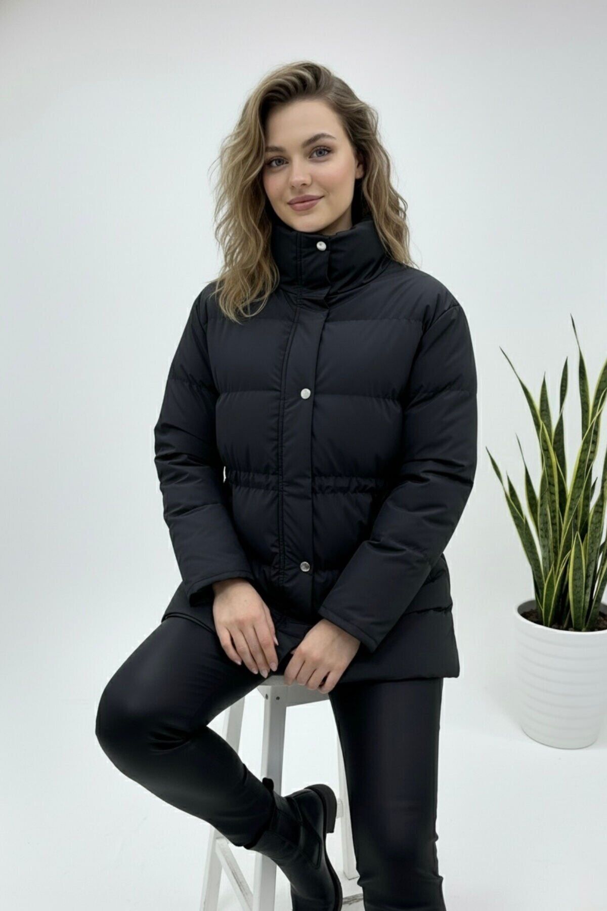 Ayarlanabilir Bel Şişme Mont Kadın Yeni Sezon Beyaz KS2568 M - siyah KS2568KS2568SİY2