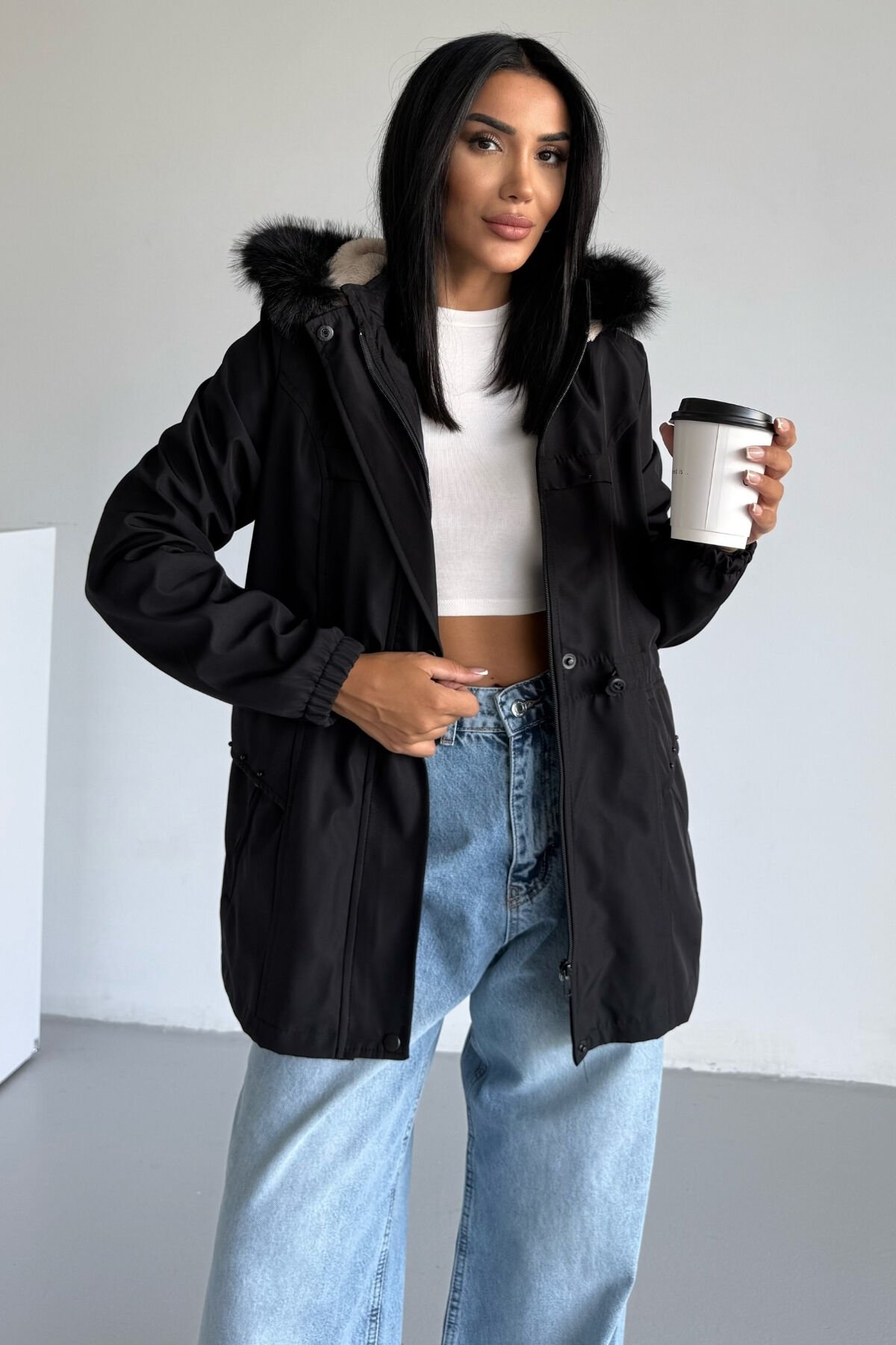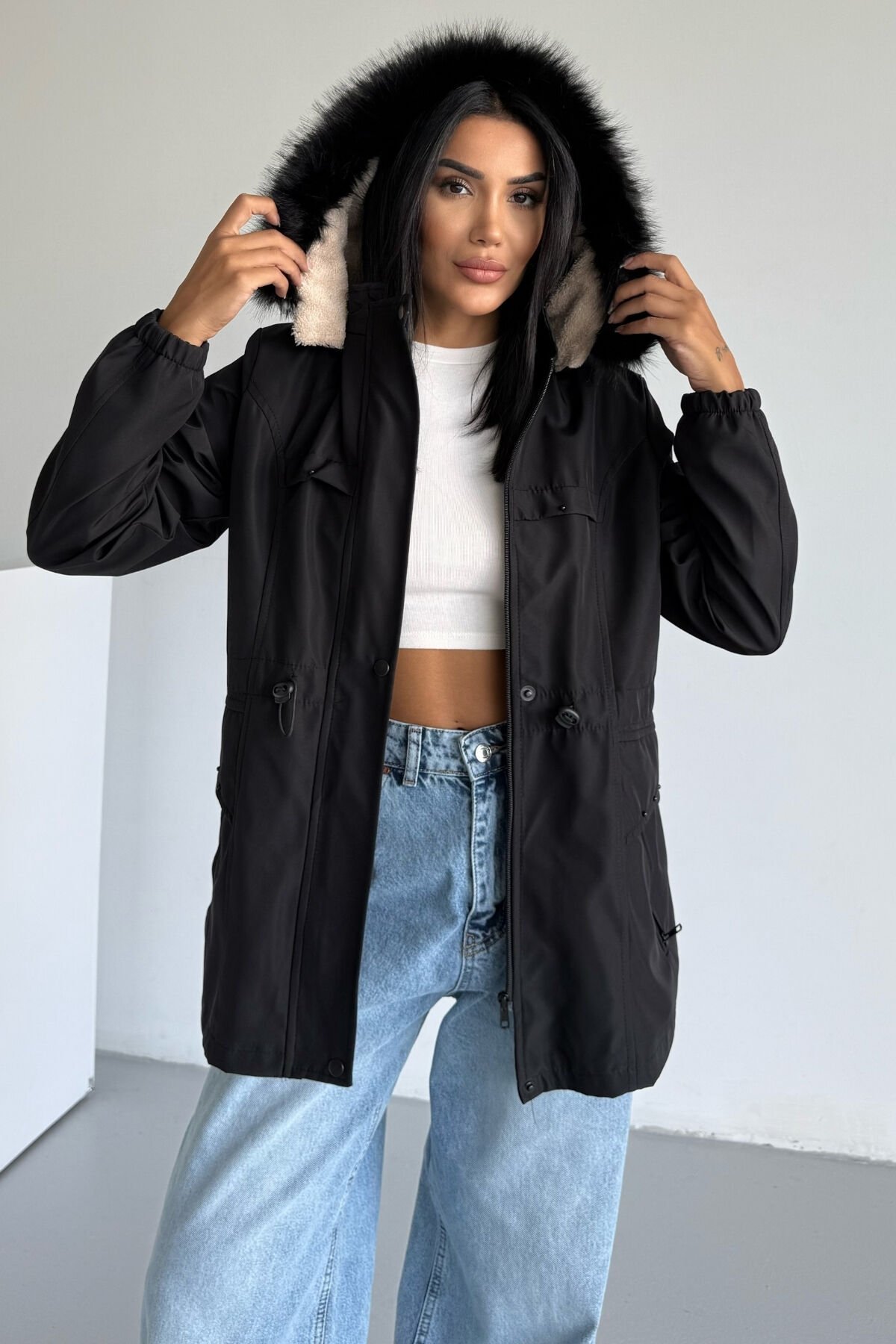 Çıkma kapüşonlu,ön kapama fermuarlı,lastik büzgülü,kapüşon önü uzun tüylü