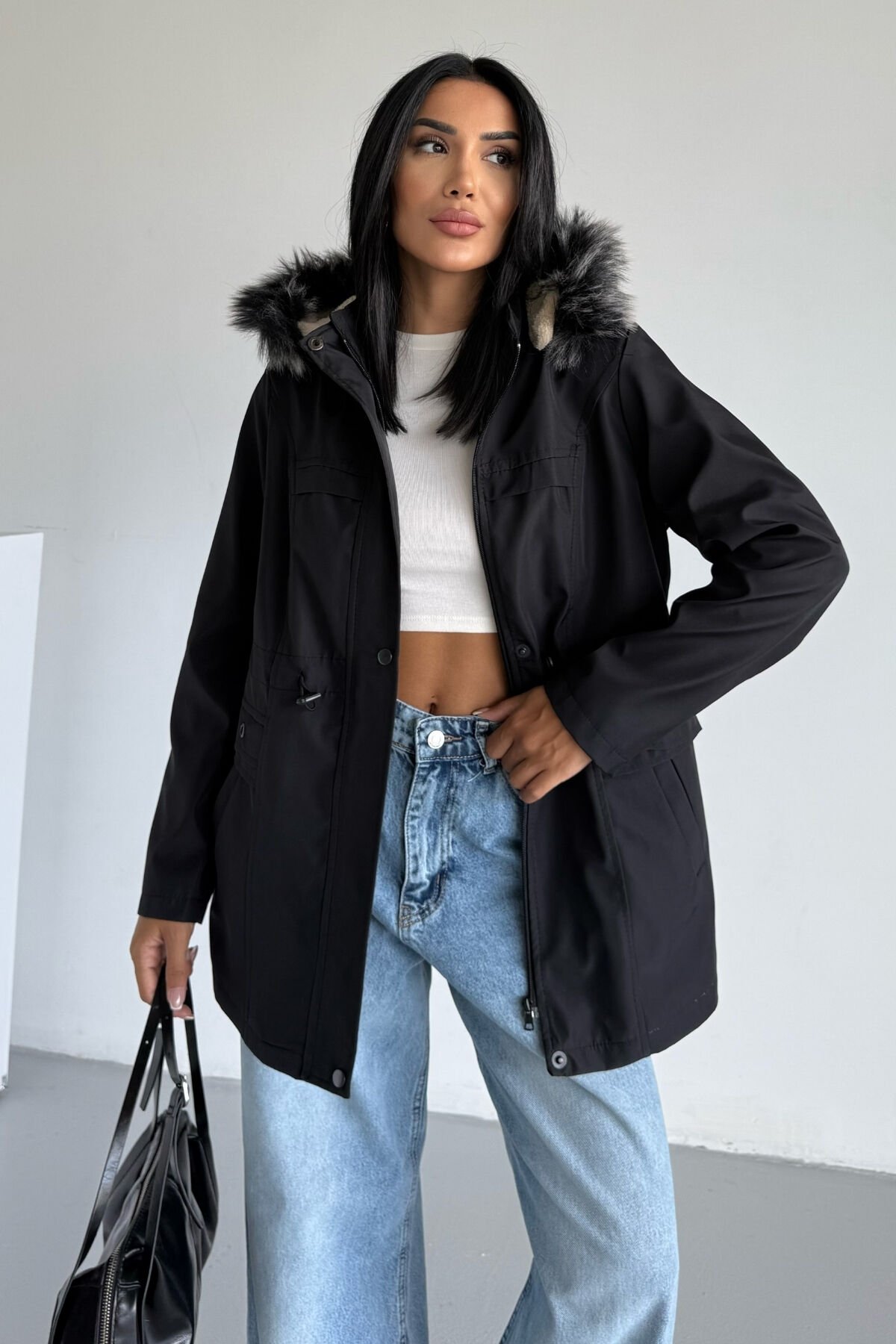 Bondit Bel Lastik Büzgülü İçi Kürklü Mont