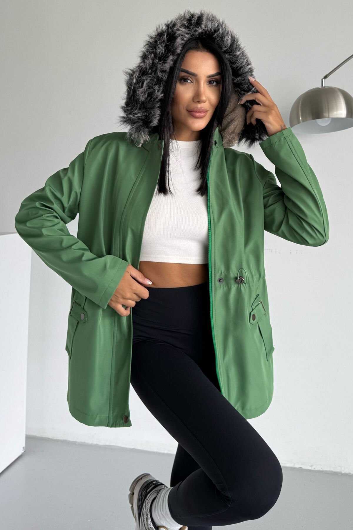 Bondik Seyyar Kapüşonlu İçi Suni Kürk Mont