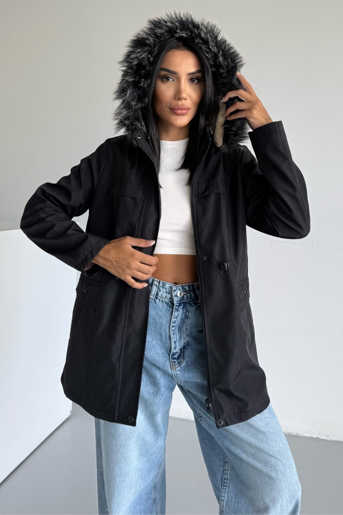 - Şık ve sade tasarımıyla her ortamda rahatlıkla tercih edebileceğiniz siyah renkli mont.; - Çok renkli detaylarıyla göz alıcı bir görünüm sunar, günlük kullanım için idealdir.; - Uzun kollu tasarımı ile kollarınızı soğuktan korurken, bel lastik büzgüsü sayesinde vücut hatlarınıza mükemmel uyum sağlar.; - İçi kürklü yapısıyla soğuk havalarda ekstra sıcaklık ve konfor sunar.; - Çift cepli tasarımı küçük eşyalarınız için pratik saklama alanları sunar.; - Kapüşonlu yaka tipi başınızı soğuktan korurken aynı zamanda stil sahibi bir görünüm kazandırır.; - Yetişkin yaş grubuna hitap eden bu mont, her yaş grubuna uygun şıklığıyla dikkat çeker.; - Yıkama talimatlarına uygun şekilde bakım yapıldığında uzun ömürlü kullanım vaat eder.; - L beden seçeneğiyle geniş beden skalasına hitap eder ve farklı vücut tiplerine uygunluk sağlar.