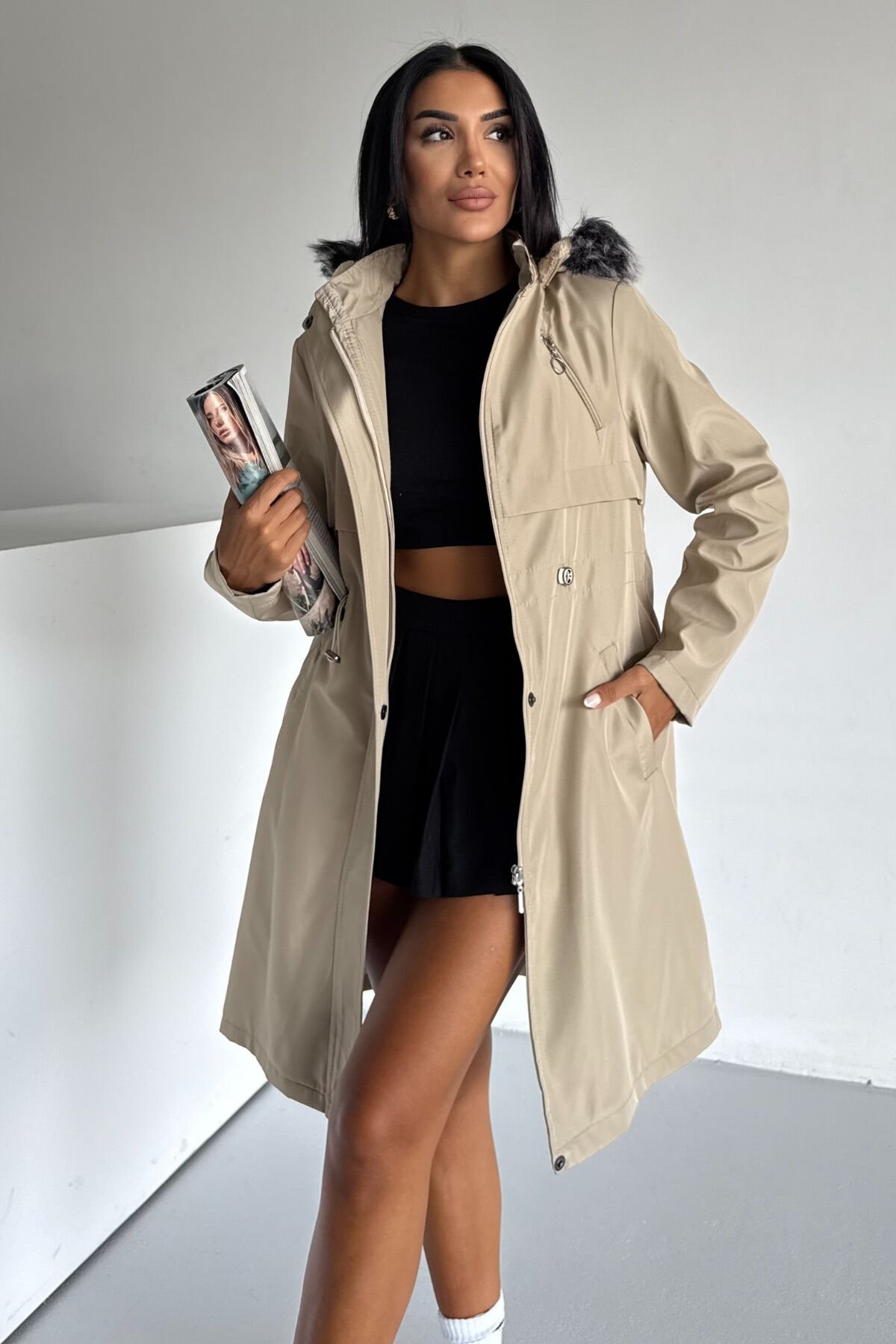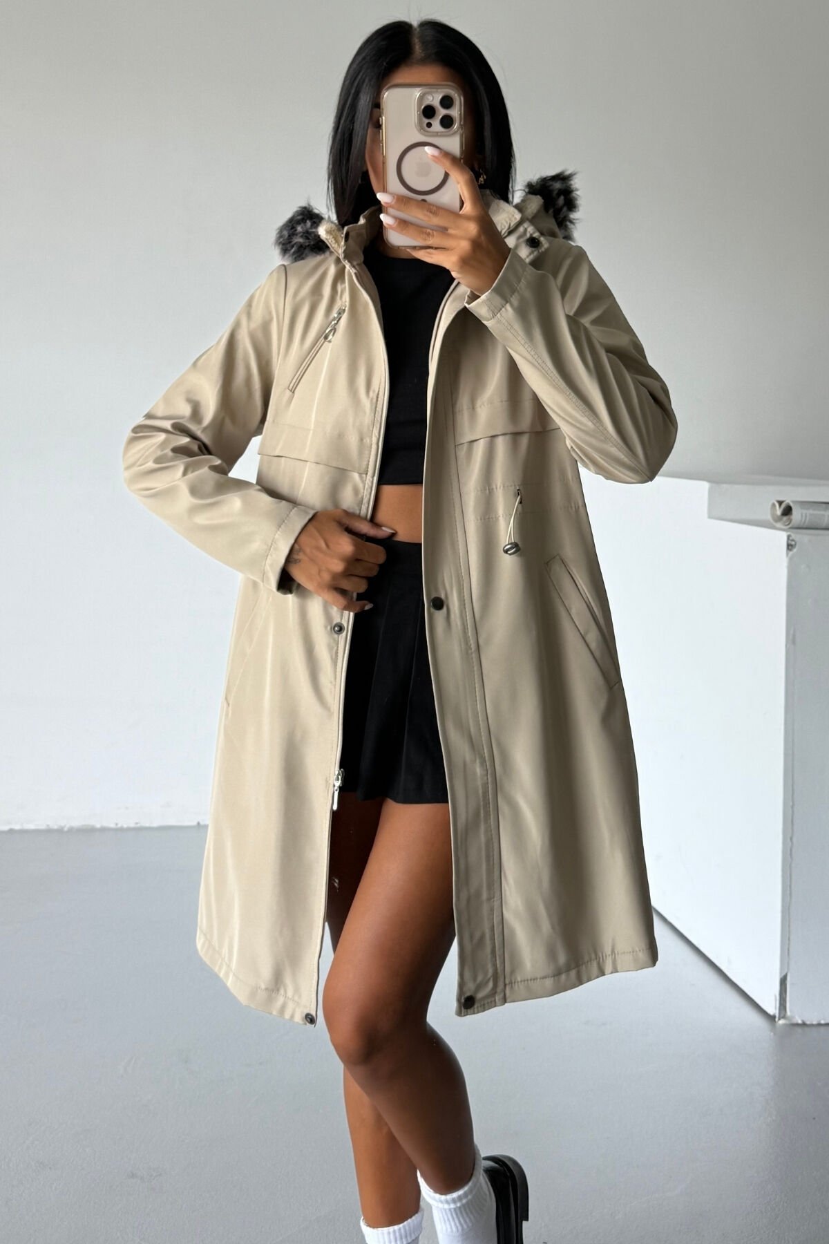 Çıkma kapüşonlu,ön kapama fermuarlı,lastik büzgülü,kapüşon önü uzun tüylü