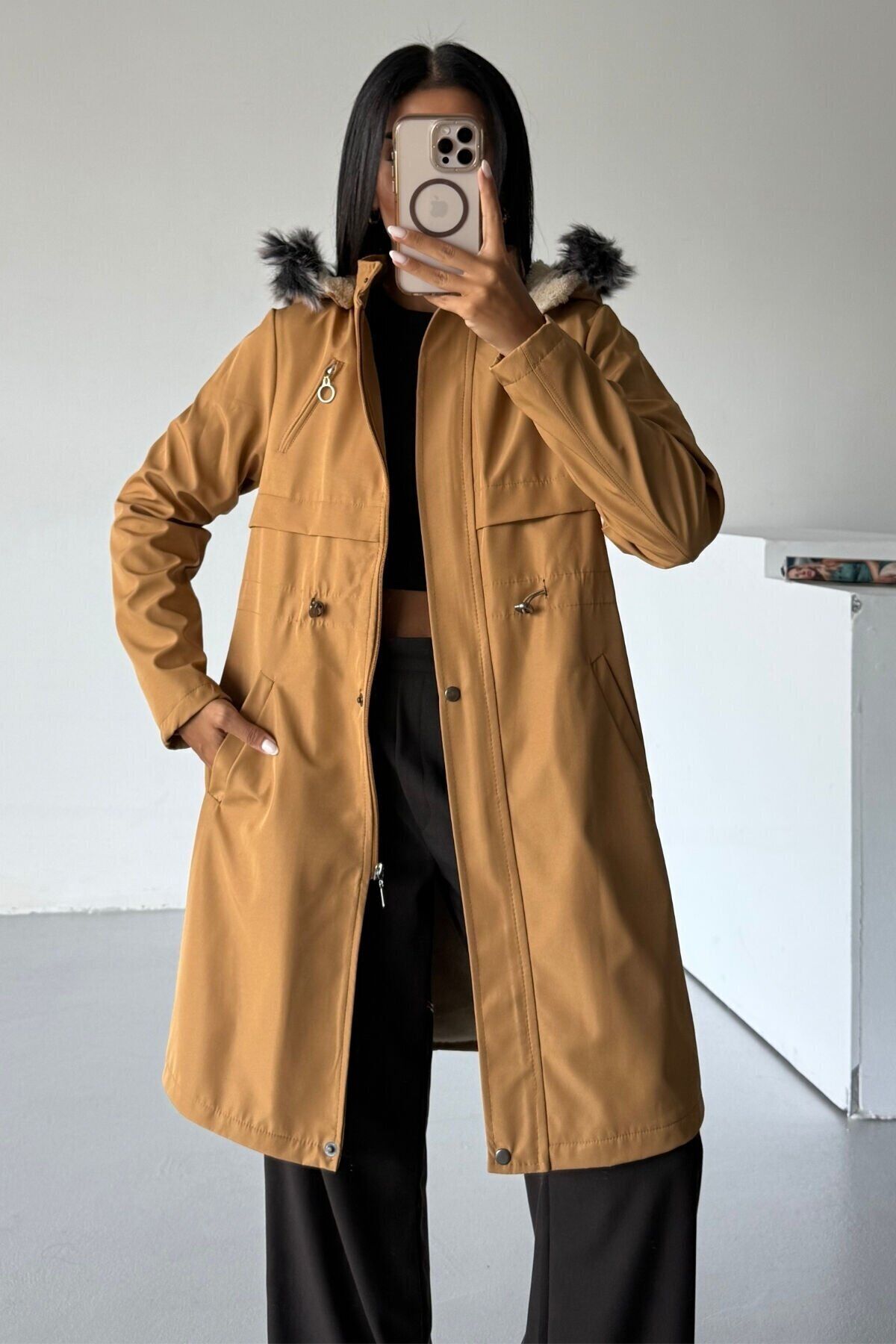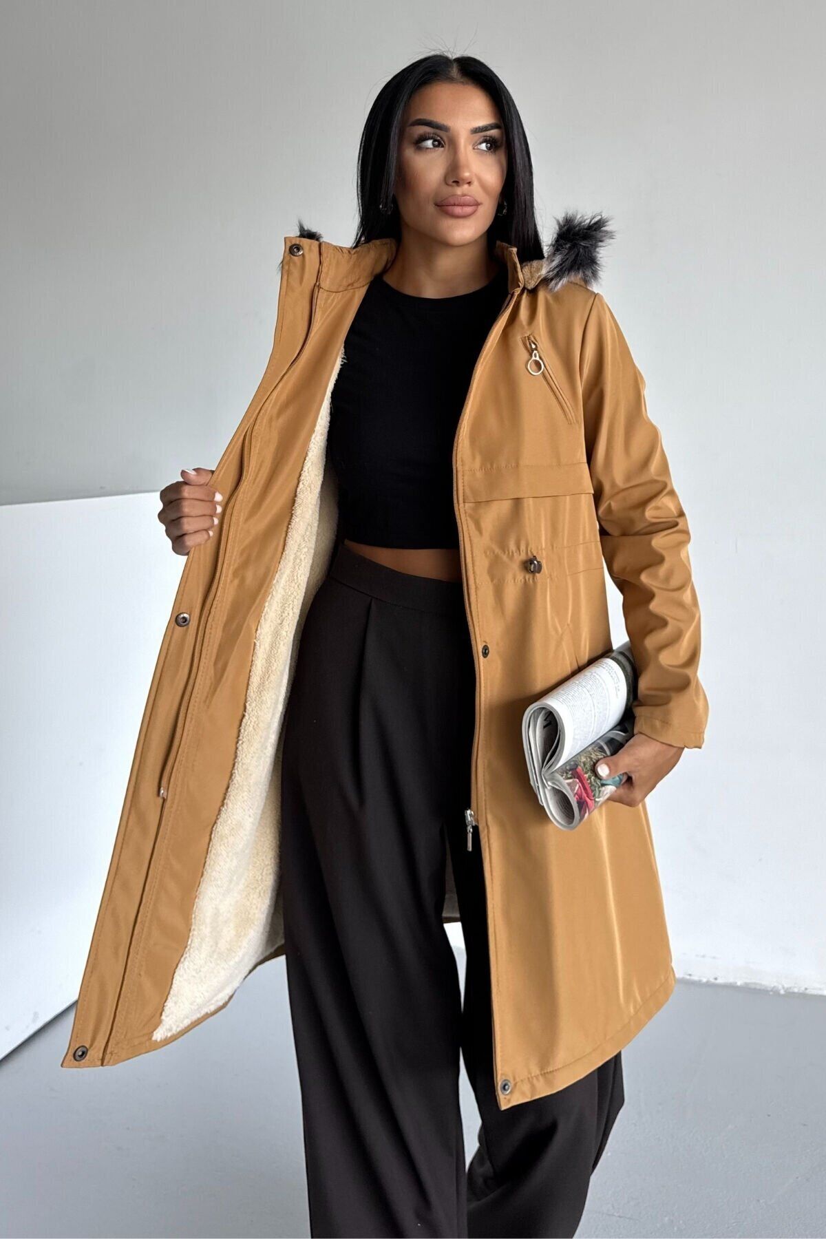 - Regular kalıp ile rahat bir kullanım sunar, her türlü vücut tipine uyum sağlar.; - Dokuma kumaş tipi, dayanıklılığı ve konforu bir arada sunar.; - Kadın ve kızlar için tasarlanmış, şık ve modern bir görünüm kazandırır.; - Türkiye menşeli olup, yerel üretimle kaliteyi ön planda tutar.; - Uzun boy tasarımı ile kış aylarında sıcak tutar ve stil sahibi bir görünüm sağlar.; - Yetişkin yaş grubuna hitap eden geniş beden skalasıyla herkes için idealdir.; - Uzun kollu tasarım soğuk havalarda ekstra koruma sağlar.; - Düz deseni sayesinde kolayca kombinlenebilir ve zamansız bir şıklık sunar.; - Gündüzden geceye her ortama uygun çok yönlülükte tasarlanmıştır.; - Kış sezonu için ideal kalınlıkta malzeme ile soğuktan maksimum koruma sağlar.; - Kemersiz tasarımı ile sade ve şık bir siluet oluşturur.; - Kutuda gönderilmez; doğrudan kullanıma hazır şekilde teslim edilir.; - Taba rengiyle doğal tonların zarafetini yansıtır.; - Sürdürülebilirlik detayları bulunmamakta ancak kaliteli materyallerle uzun ömürlü kullanım vaat eder.; - Polyester karışımlı materyali dayanıklılık ve konforu bir arada sunar.; - Çift cepli yapısı küçük eşyalarınız için pratik saklama alanları sağlar.; - Dolgusuz yapısı hafiflik katarken beli lastikli silueti vücuda mükemmel uyum sağlar.; - Fermuarlı kapama şekli kolay giyilip çıkartılabilirlik sunarken fermuar detayları modern bir dokunuş ekler.; - Uzun kol tipi soğuk hava koşullarında bile rahatlık sunar.; - Cool & Comfort persona ile hem rahat hem de şık hissetmenizi sağlar.; - Casual / Günlük koleksiyonun parçası olarak günlük kullanım için idealdir.; - Bonded kumaş teknolojisiyle dayanıklılık ve estetik görünümü birleştirir.; - Baskısız yüzeyi sayesinde zamansız bir tarz sunarken kolayca kombinlenebilir.; - Rüzgar geçirmez ek özellik soğuk rüzgarlara karşı koruma sağlar.; - Astarlı yapısıyla ekstra sıcak tutma özelliği sunarken kapüşonlu yaka tipi başınızı soğuktan korur.; - Çok renkli web color seçeneğiyle canlılık katarken düz dokuma tipiyle