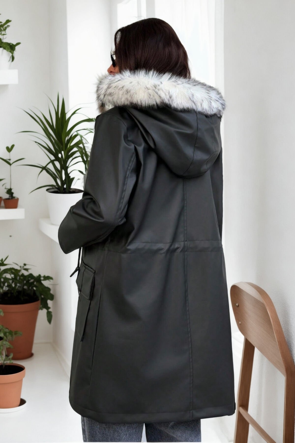 Deri Kapüşonlu Kadın Peluş Astarlı Mont KS2548