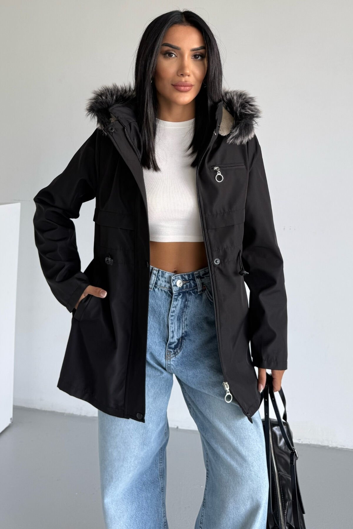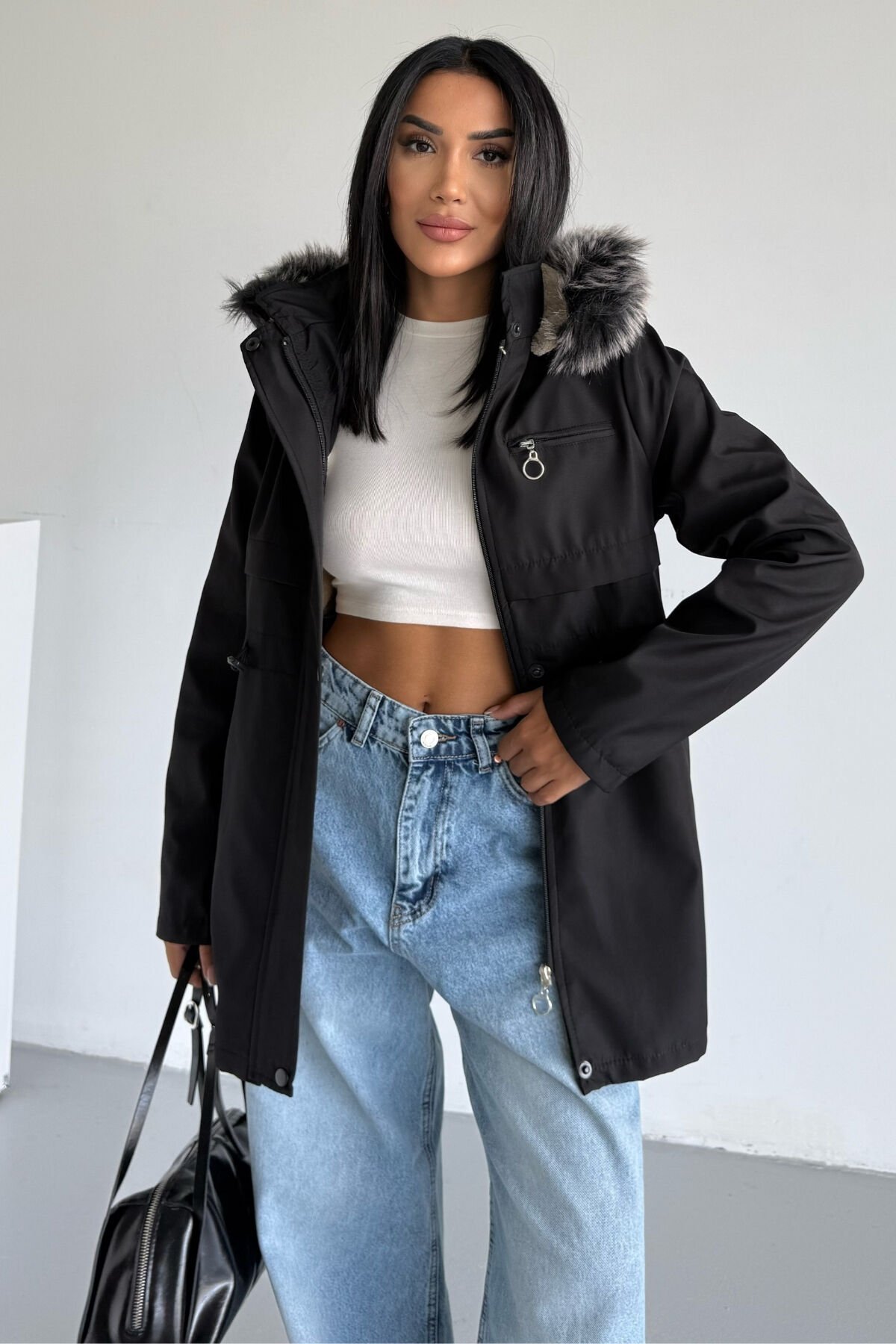Çıkma kapüşonlu,ön kapama fermuarlı,lastik büzgülü,kapüşon önü uzun tüylü