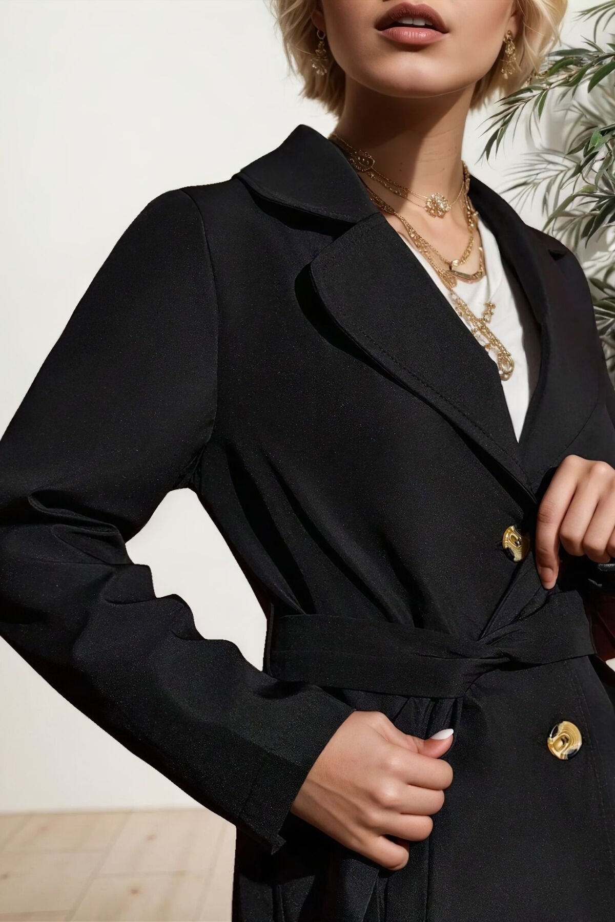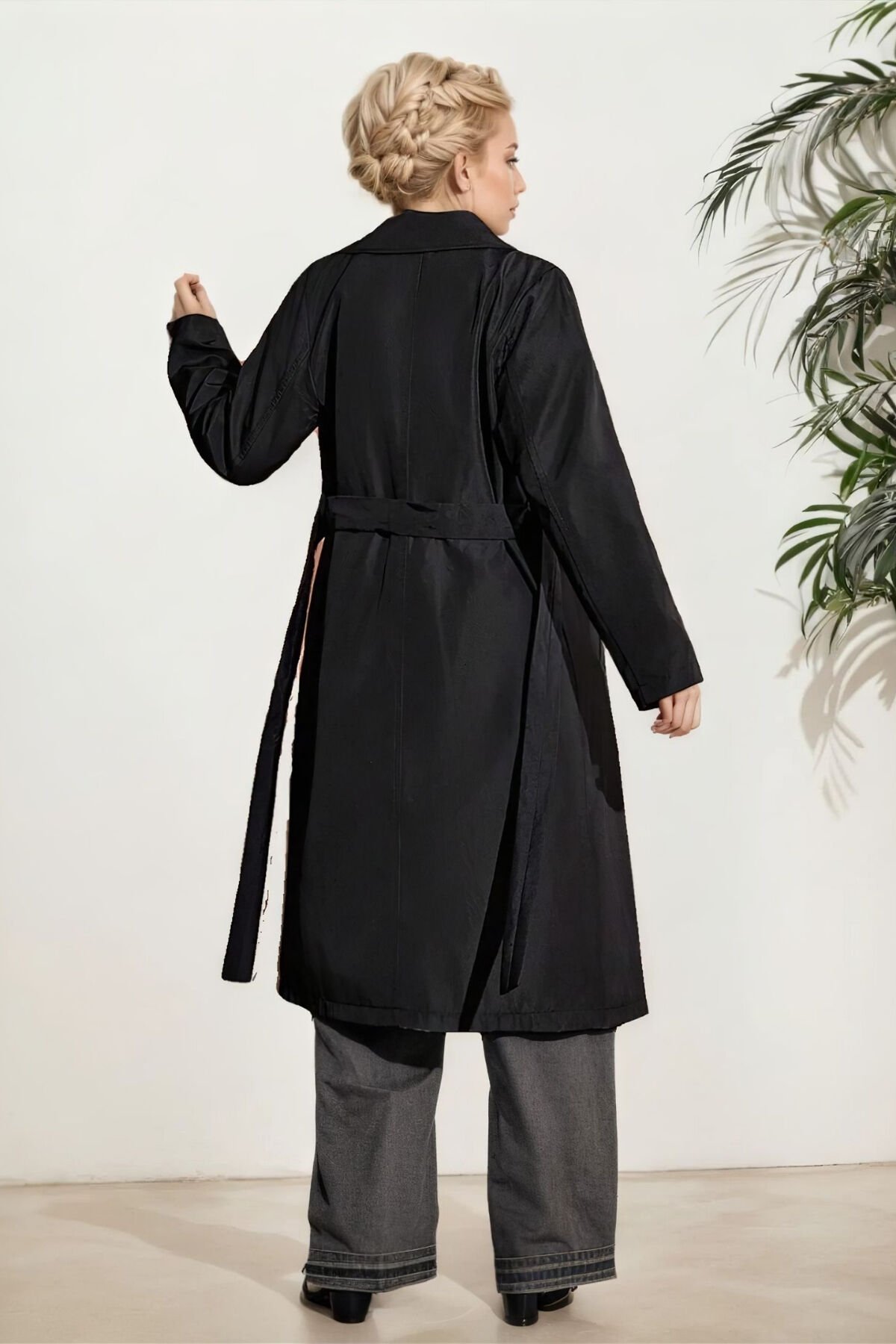 - Standart kol tasarımı ile gün boyu rahat hareket etme özgürlüğü sunar.; - Sade ve şık görünümüyle her ortamda dikkat çeken düz deseni, zamansız bir stil oluşturur.; - Hem gündüz hem de gece kullanımına uygun olarak tasarlanmıştır; esnek kombin seçenekleri sağlar.; - Ceket yakası sayesinde modern ve sofistike bir duruş sergilerken, pratikliği korur.; - Çift cepli yapısı küçük eşyalarınız için kolay erişim imkanı tanır.; - Astarlı olması soğuk havalarda ekstra konfor ve sıcaklık sağlar.; - Düğmeli kapama şekliyle klasik trençkot görünümünü tamamlar ve kişisel zevke göre ayarlama olanağı sunar.; - Casual koleksiyonun parçası olarak günlük kullanım için idealdir; rahatlığı ve şıklığı bir arada yaşamanızı sağlar.; - Bel kısmındaki kuşak detayı belinizi vurgulayarak feminen siluetinizi ön plana çıkarır.; - "Cool & comfort" persona'sıyla tarzınıza dinamik bir dokunuş katarken aynı zamanda konforundan ödün vermezsiniz.; - Yıkama talimatlarına uygun bakım yapıldığında uzun süre ilk günkü gibi kalacaktır.; - Uzun kol boyu mevsimsel geçişlerde ideal koruma sunarken, rüzgar geçirmez özelliğiyle kötü hava koşullarında bile sizi korur.; - Dokuma materyali dayanıklılığı arttırarak ürün ömrünü uzatırken aynı zamanda nefes alabilir yapıdadır.; - "Regular" kalıp seçeneğiyle vücudu saran ancak sıkmayan ideal oturuşa sahiptir; her bedene uyum sağlayacak şekilde tasarlanmıştır.; - Kalın yapısı soğuk kış günlerinde sıcak tutarken düz dokuma tipiyle kaliteli hissiyat verir.; - Ek özellik olarak rüzgar geçirmezlik özelliği sayesinde dışarıda karşılaşılabilecek ani değişen hava şartlarından korunmanıza yardımcı olur.; - Dokuma kumaş tipi dayanıklılığı artırarak sık kullanımda bile formunu korumasına olanak tanır.; - Kadın / kız cinsiyetine hitap eden bu parça her yaştan kadının gardrobunda yerini almayı hak ediyor.; S / Göğüs : 99 cm - Bel: 92 - Ürün Uzunluğu: 109 cm M/ Göğüs : 103 cm - Bel: 93 - Ürün Uzunluğu: 110 cm L/ Göğüs : 108 cm - Bel: 95 - Ürün Uzunluğu: 113 cm XL/ Göğüs : 109 cm - Bel: 99 - Ürün Uzunluğu: 113 cm