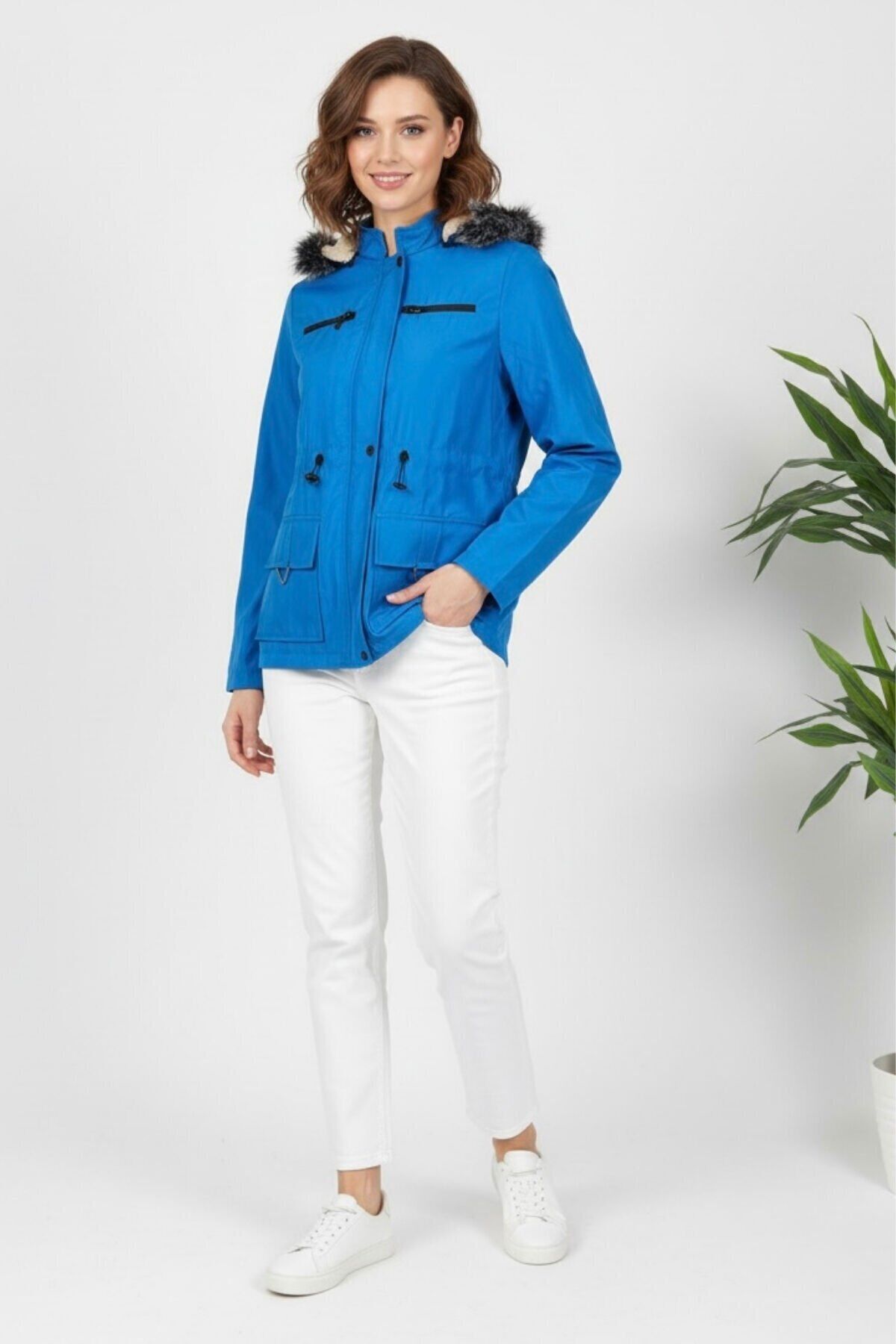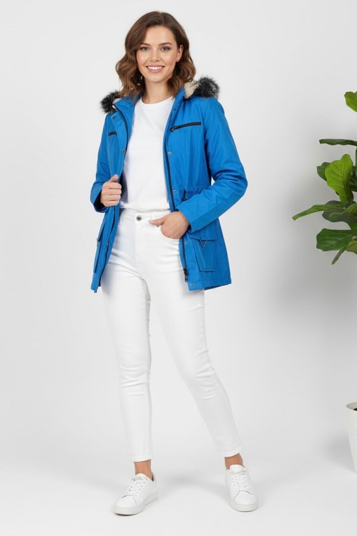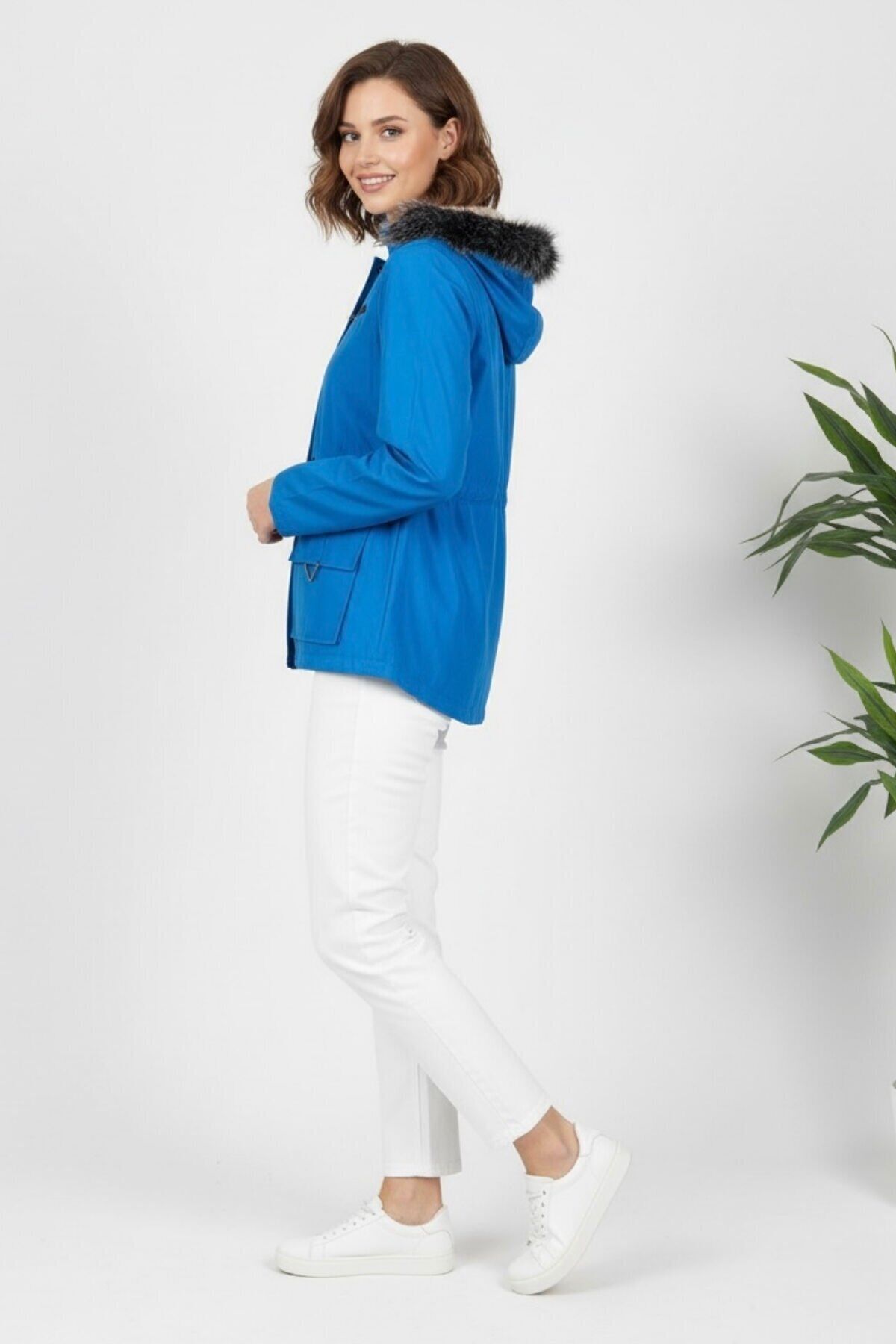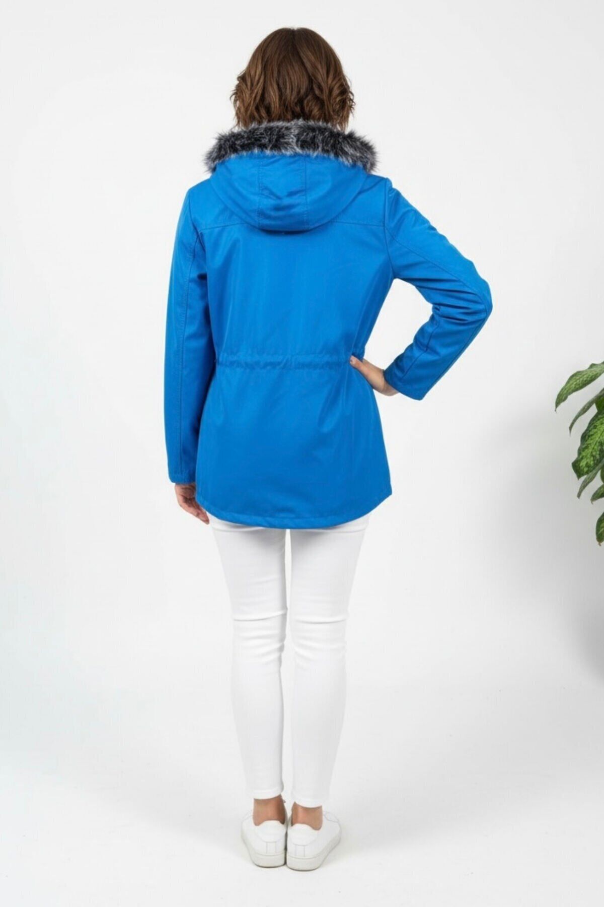 Kadın Kapüşonlu Astarlı Mont Mavi KS2547 40 - Mavi