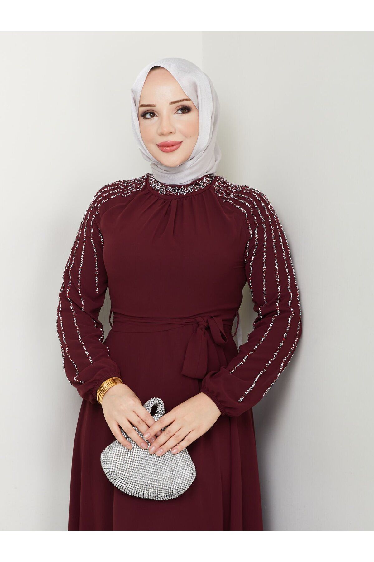 - Şık ve zarif tasarımıyla dikkat çeken kadın abiye elbise, özel günlerde göz alıcı bir görünüm sunar.; - Şifon kumaşın hafif ve akıcı yapısı, hareket özgürlüğü sağlar ve rahat bir kullanım imkanı tanır.; - Astarlı yapısı sayesinde şeffaf detayları gizleyerek daha çekici bir siluet oluşturur.; - Uzun kollu tasarımı ile mevsim geçişlerinde ideal koruma sağlar ve şık bir görünüm sunar.; - Yetişkin yaş grubuna yönelik olarak tasarlanmıştır; her yaştan kadının tercihi olabilir.; - Sürdürülebilirlik konusuna önem verilmemiş olsa da, kaliteli malzemesiyle uzun ömürlü kullanım vaat eder.; - Uzun kol boyu ile kolların tamamını kaplayarak zarif bir görünüm kazandırır.; - Type 2 yıkama talimatına uygun şekilde bakım yapıldığında formunu korur ve ilk günkü gibi kalır.