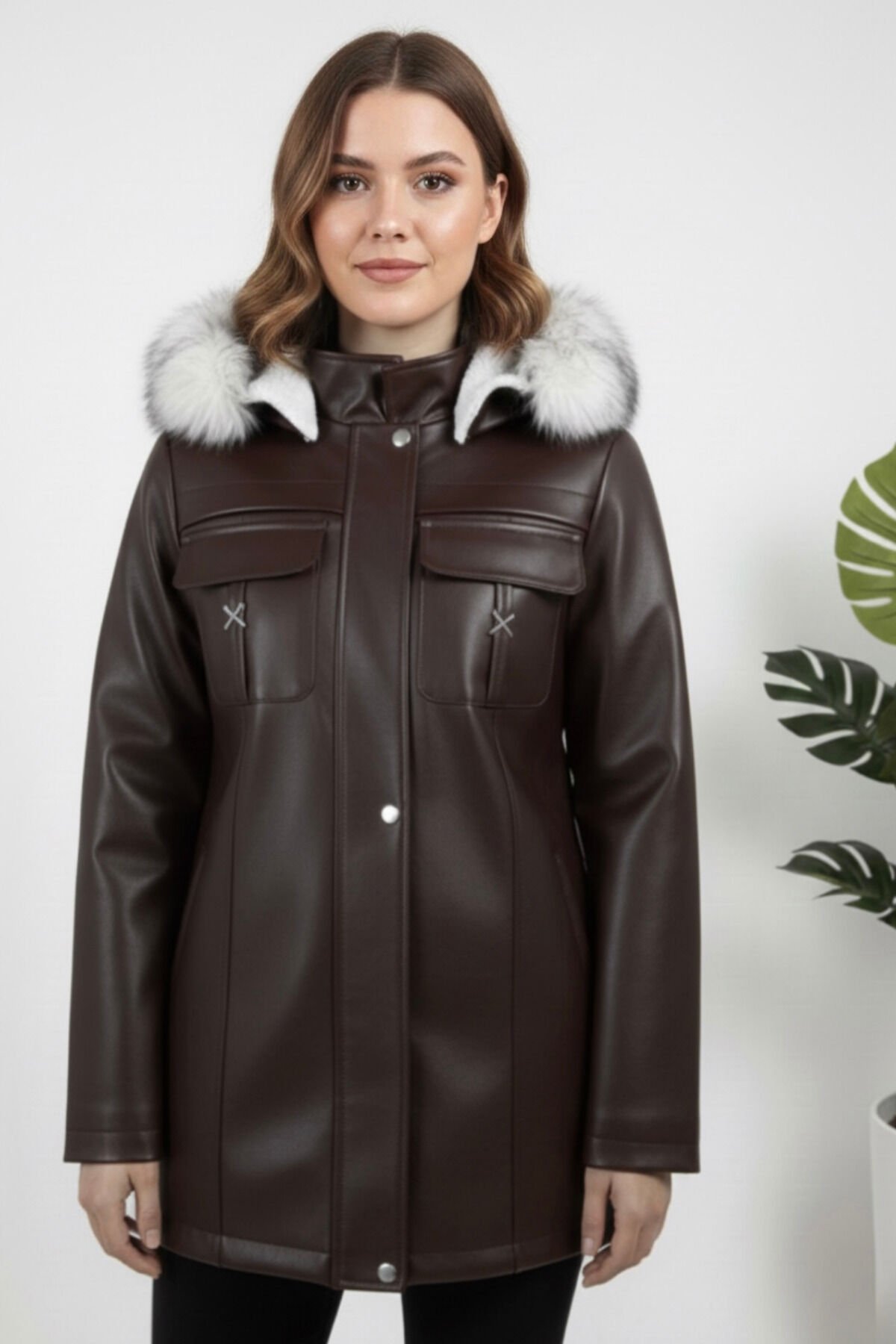 Şık ve sıcak tutan kadın deri mont, kürk kapüşonu ve iç astarıyla soğuk havalarda mükemmel koruma sağlar. Modern tasarımı ve kaliteli malzemesiyle hem konforlu hem de trend görünürsünüz. Kış kombinlerinizin vazgeçilmezi olacak bu mont, dayanıklı ve şık bir seçimdir.