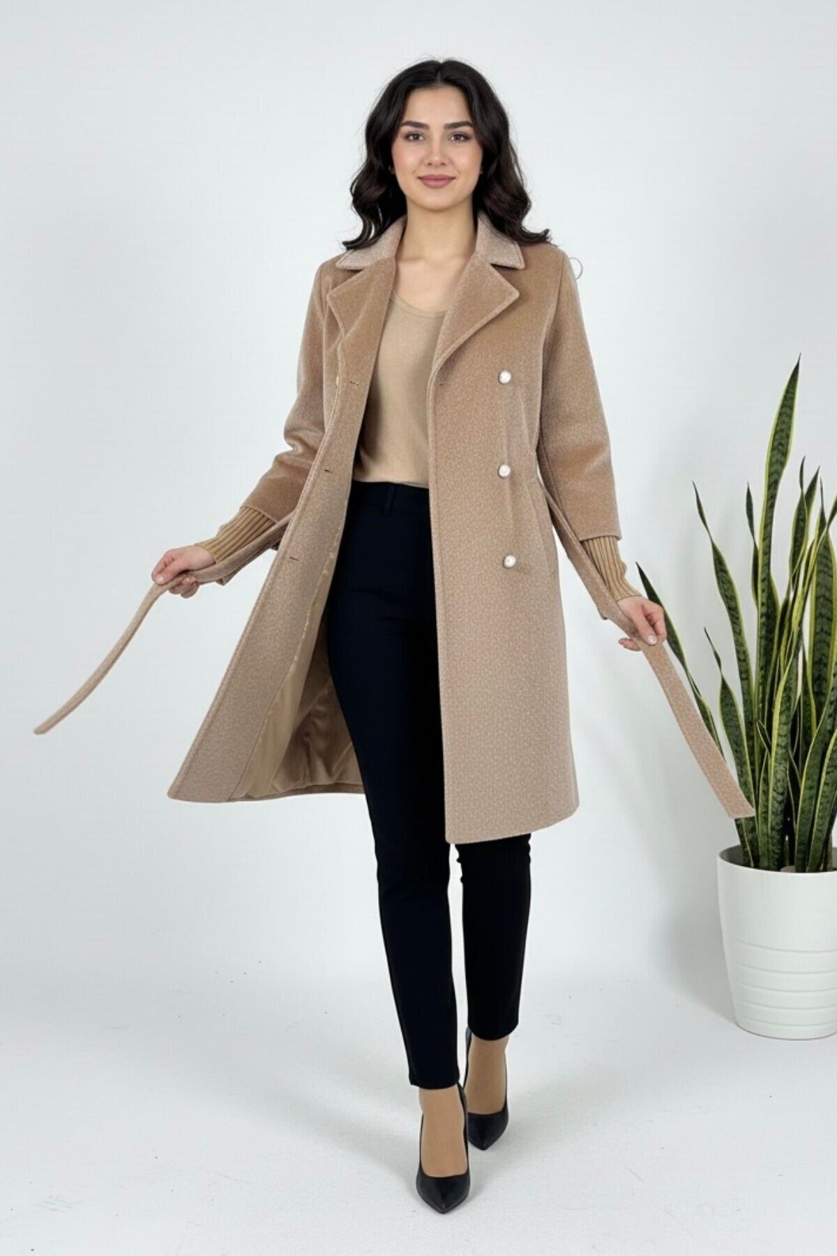 - Yeni sezonun trendlerini yansıtan belden bağlamalı tasarımıyla, şık ve modern bir görünüm sunar.; - Yetişkin kadınlar için özel olarak tasarlanmış, rahat ve günlük kullanım için idealdir.; - Regular kalıp ve boyu sayesinde vücut hatlarınıza uyum sağlayarak konforlu bir deneyim sunar.; - Dokuma kumaş tipi, dayanıklılığı artırarak uzun süreli kullanım imkanı sağlar.; - Rüzgar geçirmez özelliği ile soğuk havalarda ekstra koruma ve sıcaklık sunar.; - Dolgusuz yapısı sayesinde hafif ve rahat bir kullanım sağlar; çift cepli tasarımı küçük eşyalarınız için pratik saklama alanları sunar.; - Düz dokuma tipi, şık ve sade bir görünüm kazandırırken, düz deseniyle kolayca kombinlenebilir.; - Kemerli tasarımı belinizi vurgulayarak feminen bir siluet oluşturur; ceket yaka detayları ile klasik ve zamansız bir tarz yaratır.; - Çok renkli web color seçeneğiyle canlı ve dinamik bir stil ifade ederken, kuru temizleme tavsiyesiyle kolay bakım imkanı sunar.; - Uzun kol tipi ve astarlı yapısı soğuk günlerde ekstra koruma sağlarken, yünlü materyali ısı yalıtımını artırarak konforlu bir deneyim sunar.; - Recycle sürdürülebilirlik detayı ile çevre dostu bir tercih yapmanızı sağlar; baskısız