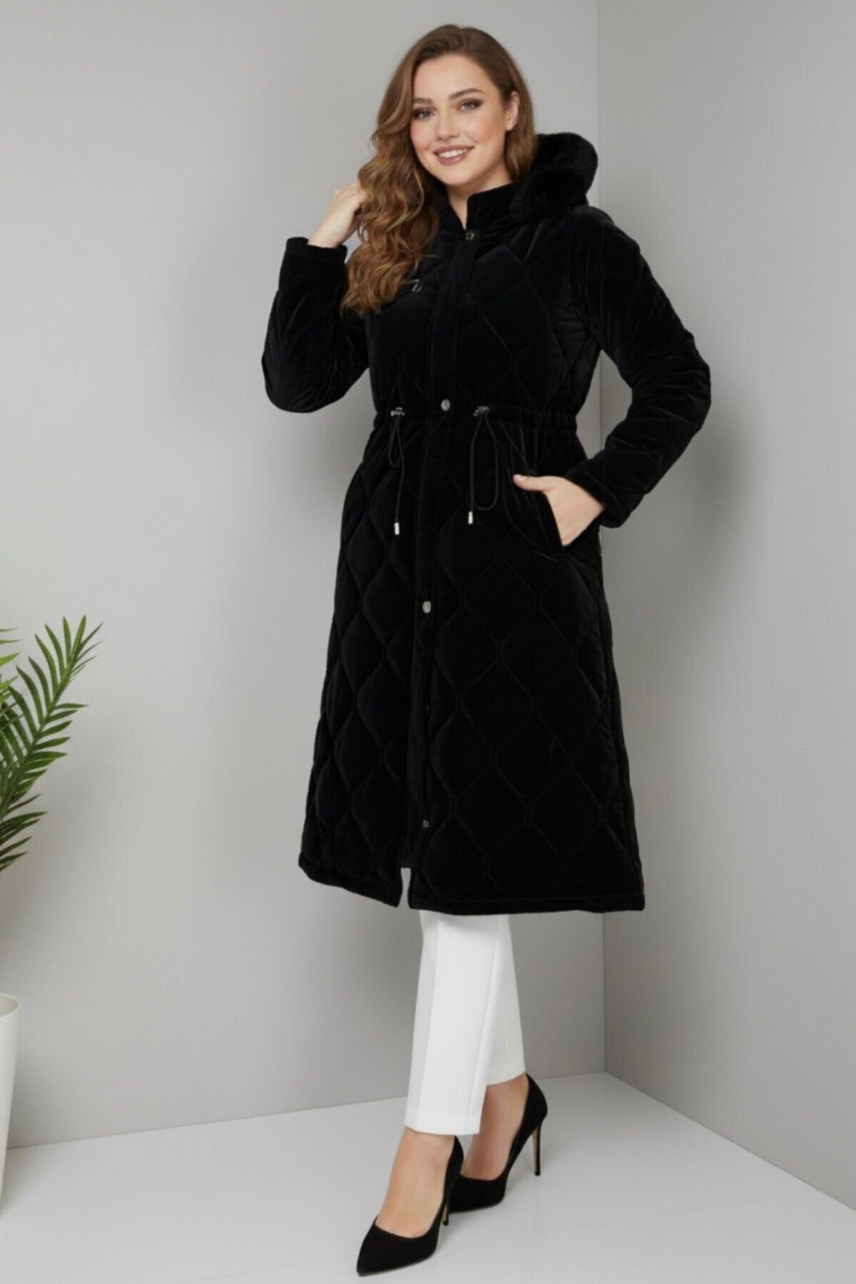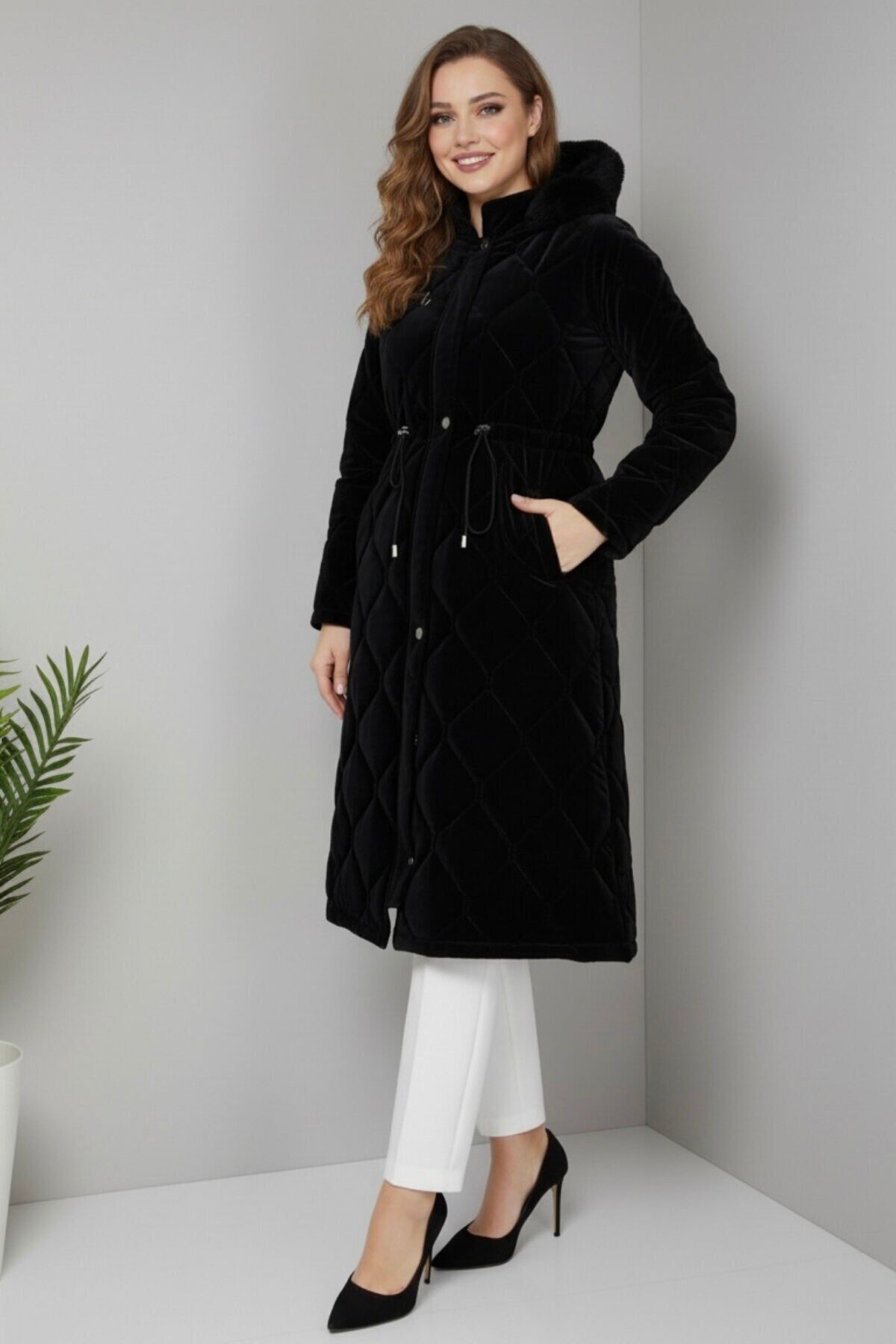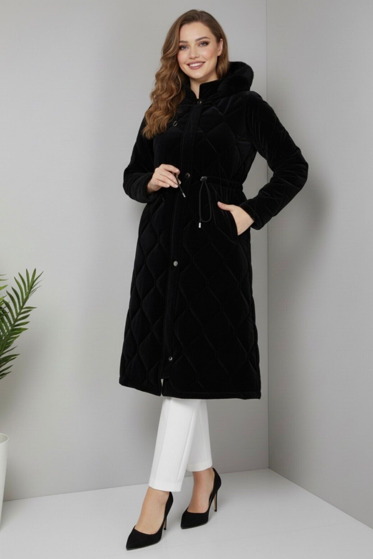 Kadın Yeni Sezon Beli Bağcıklı Novam Kumaş Mont Siyah KS2549 42 - siyah