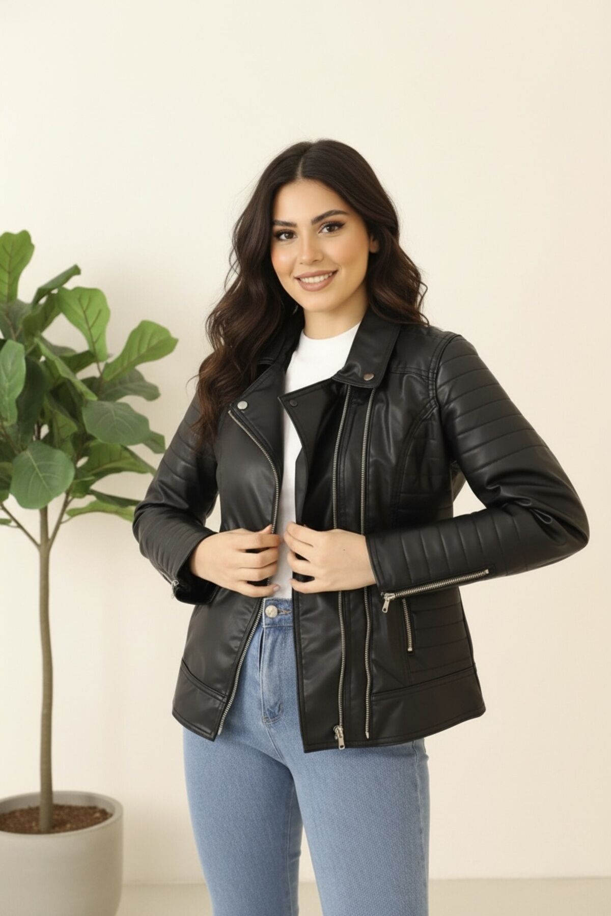 kadın yeni sezon polar astarlı deri mont 42 - rxSiyah