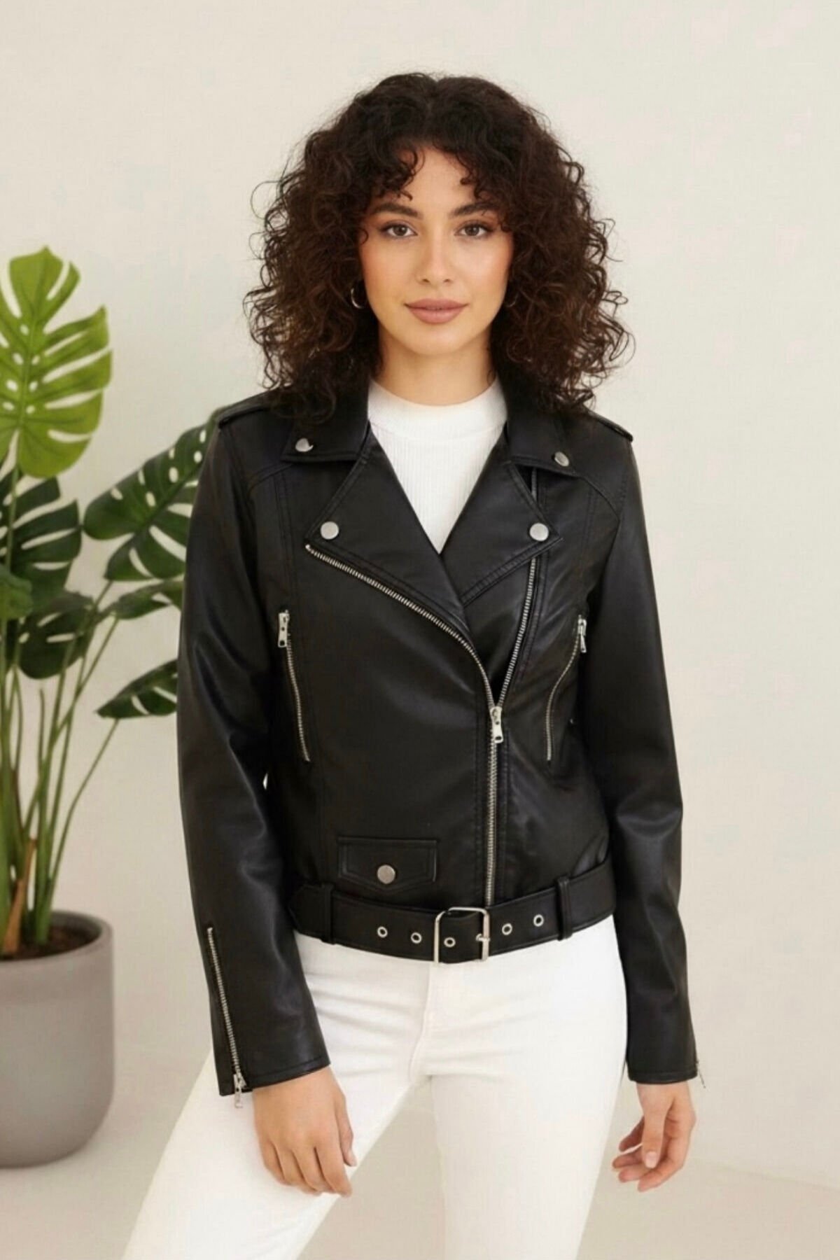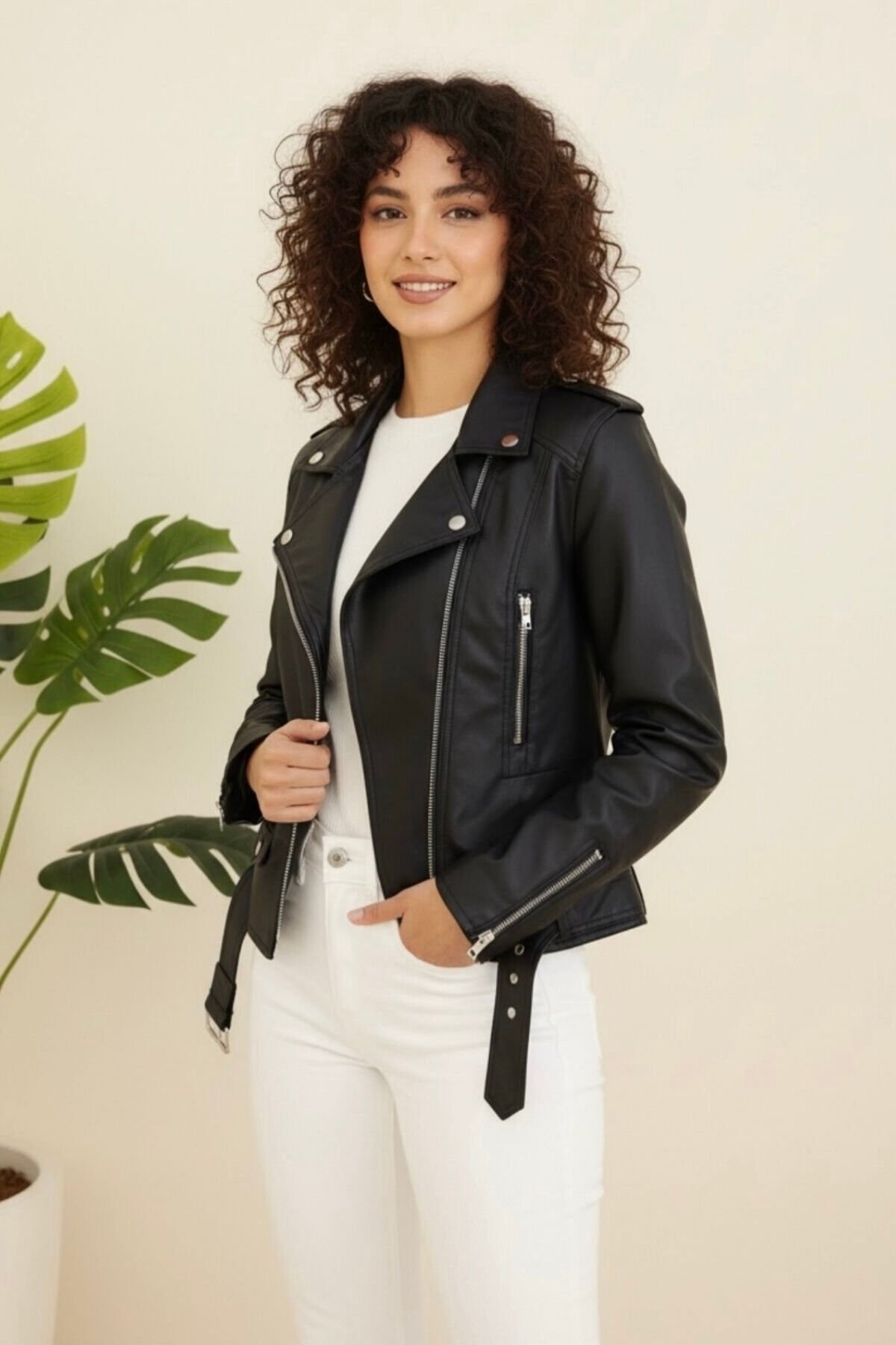 - Yeni sezonun trendlerini yansıtan, kadınlar için özel olarak tasarlanmış suni deri mont.; - Kısa boyu ve regular kalıbı ile rahat bir kullanım sunar.; - Yetişkin kadınların günlük giyim ihtiyaçlarına uygun, düz ve şık bir tasarıma sahiptir.; - Astarlı yapısı sayesinde soğuk havalarda ekstra konfor sağlar.; - Kalın dokusu ile kış aylarında sıcak tutarken, su itici özelliği sayesinde yağmurlu günlerde de koruma sunar.; - Fermuarlı kapama şekli pratik kullanım imkanı verirken, kemersiz tasarımı modern bir görünüm kazandırır.; - Siyah rengiyle her ortama uyum sağlayacak şekilde tasarlanmıştır; gündüzden geceye şıklığınızla dikkat çekin.; - Çift cepli yapısı küçük eşyalarınız için kolay erişim imkanı sunar.; - Ceket yaka detayı ile zarif bir duruş sergilerken, uzun kollu tasarımı soğuk havalarda bileklerinizi korur.; - Kuru temizleme tavsiyesiyle uzun süreli kullanım için idealdir.