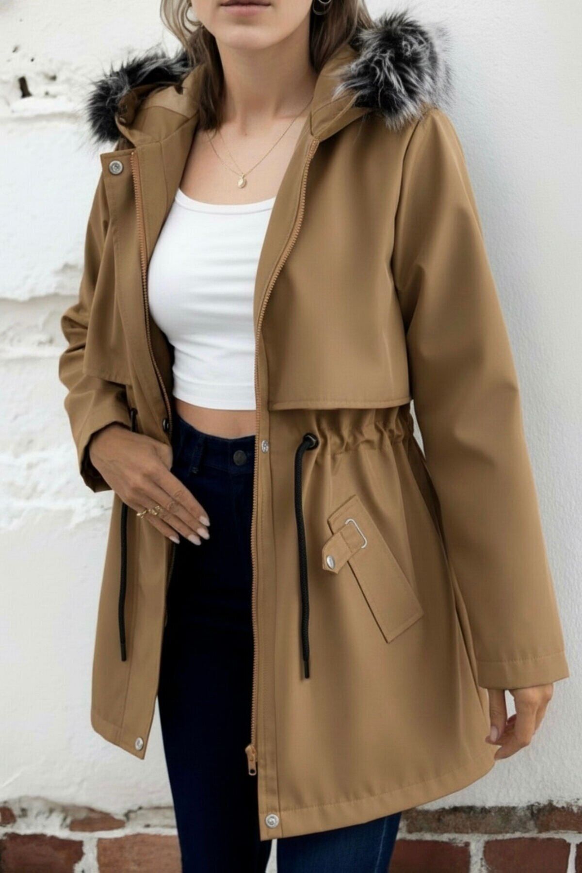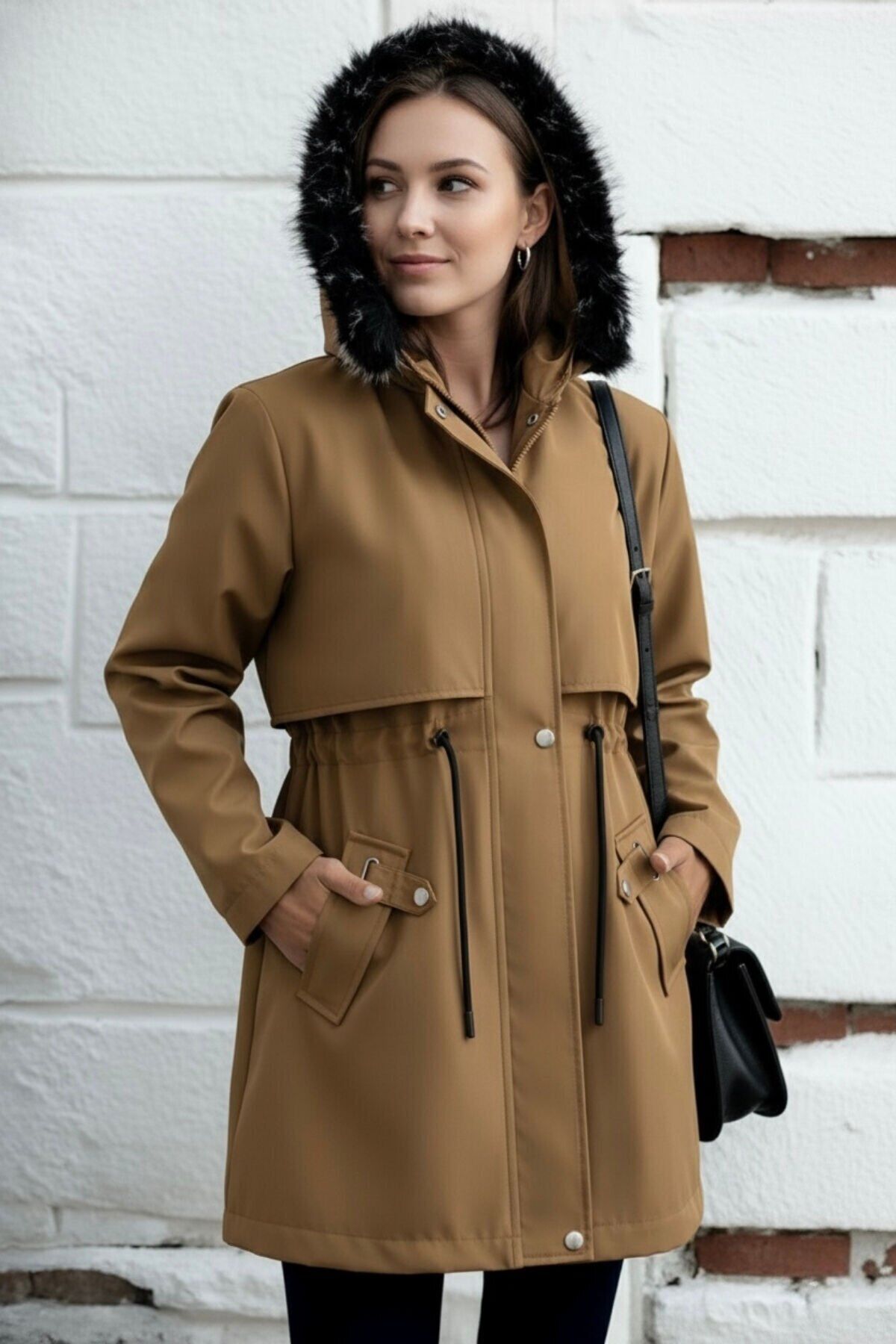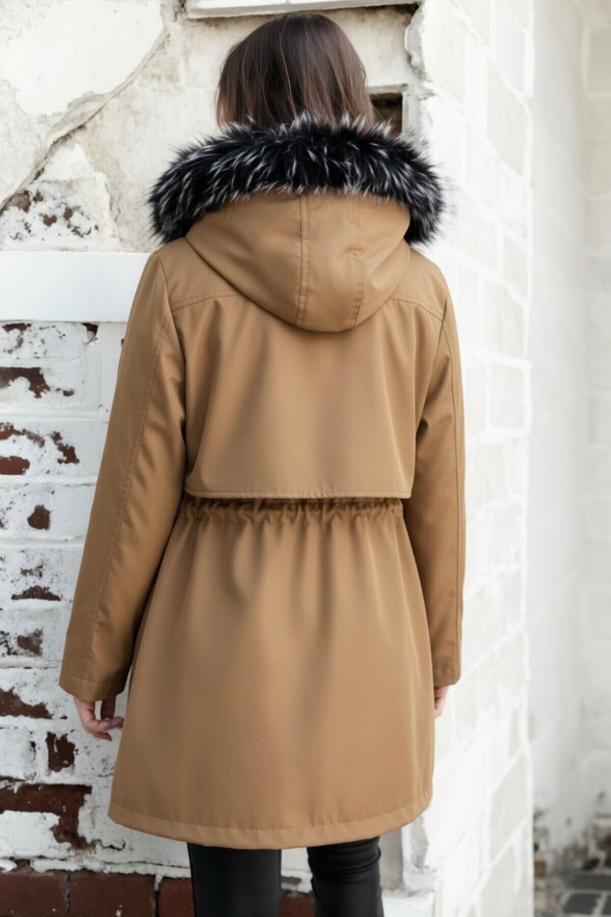 Kapüşonlu Kürk Astarlı Fermuarlı Mont KS2529 42 - Taba