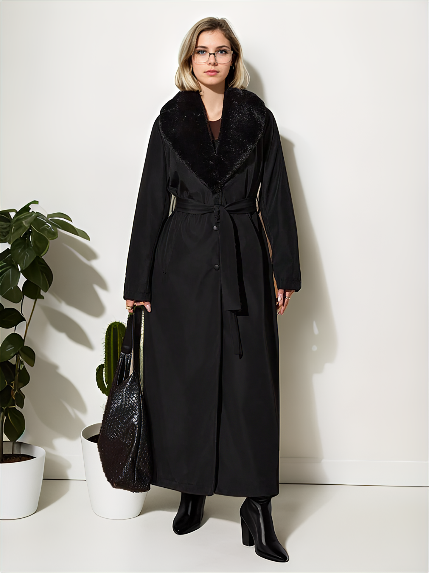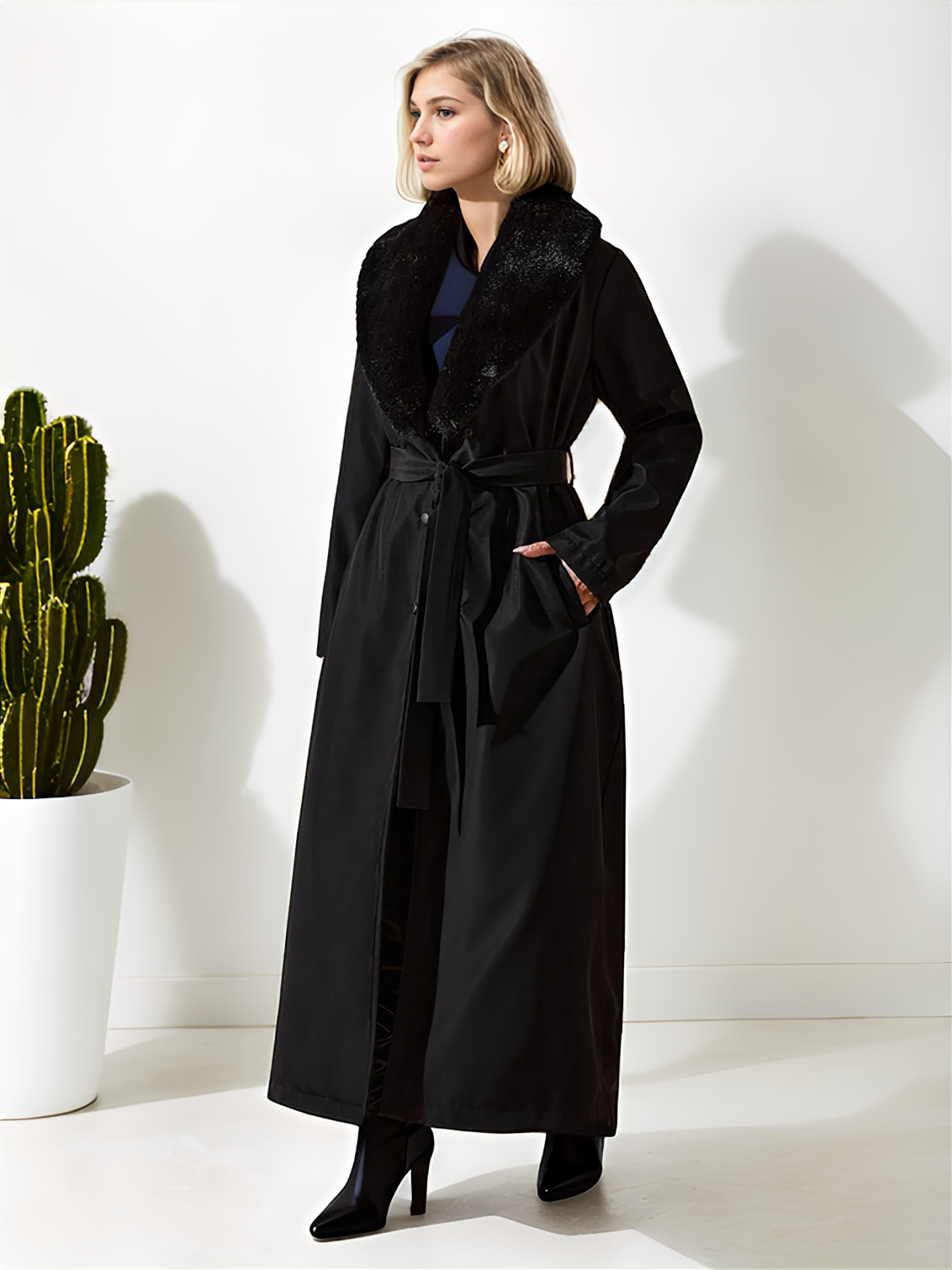 Klasik Yakası Kürk Detaylı Uzun Manto siyah - 38
