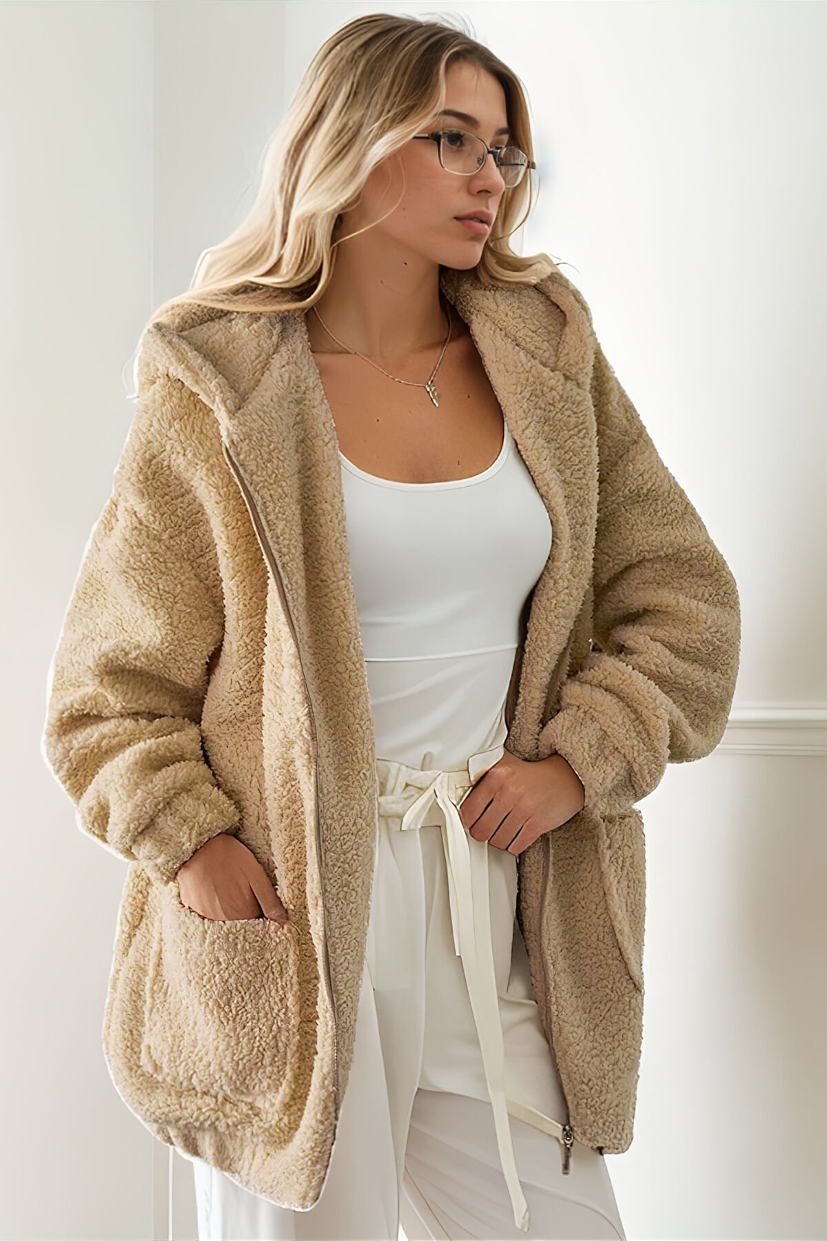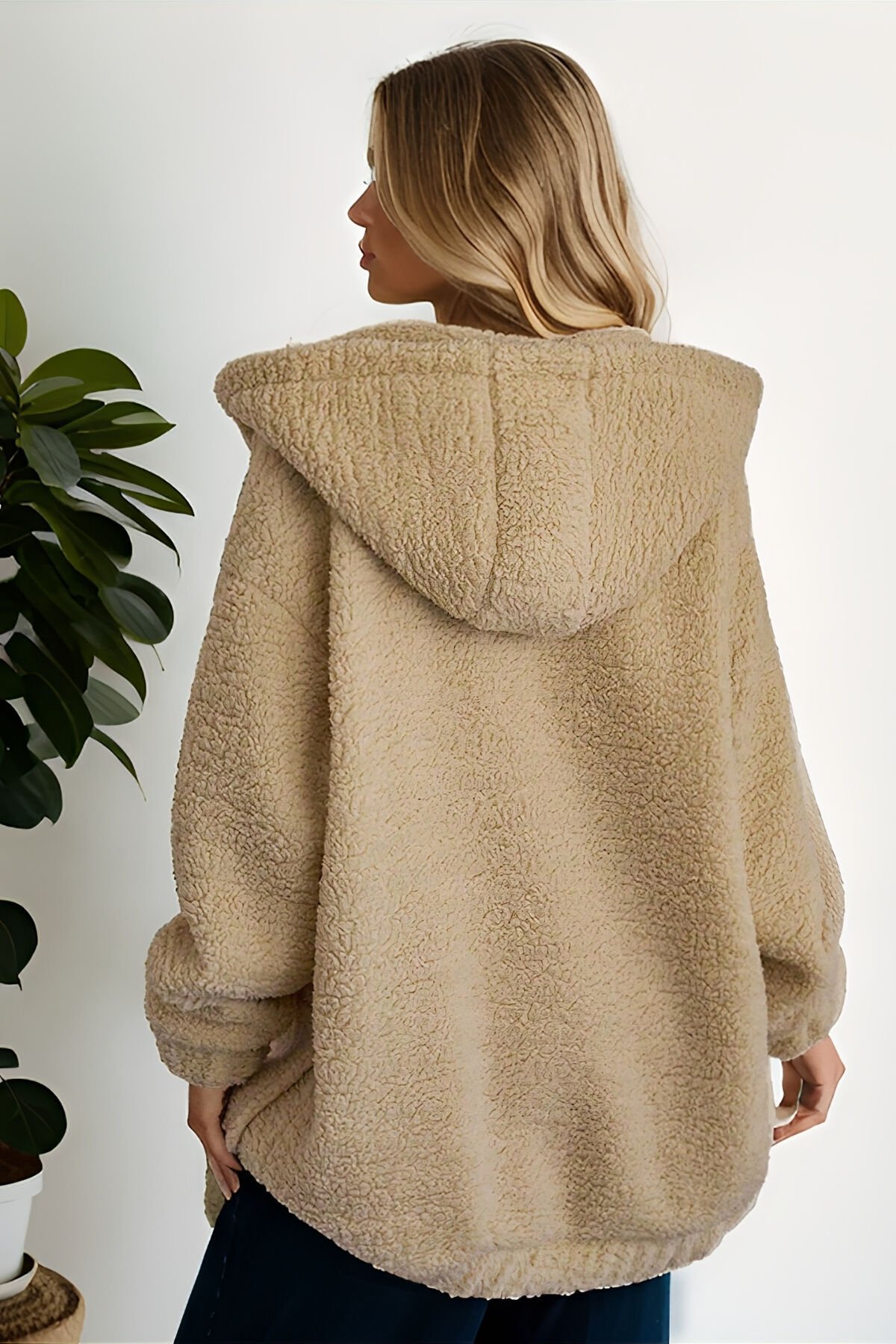 Peluş Kuzu Kıvırcık Torba Cepli Kolej Mont