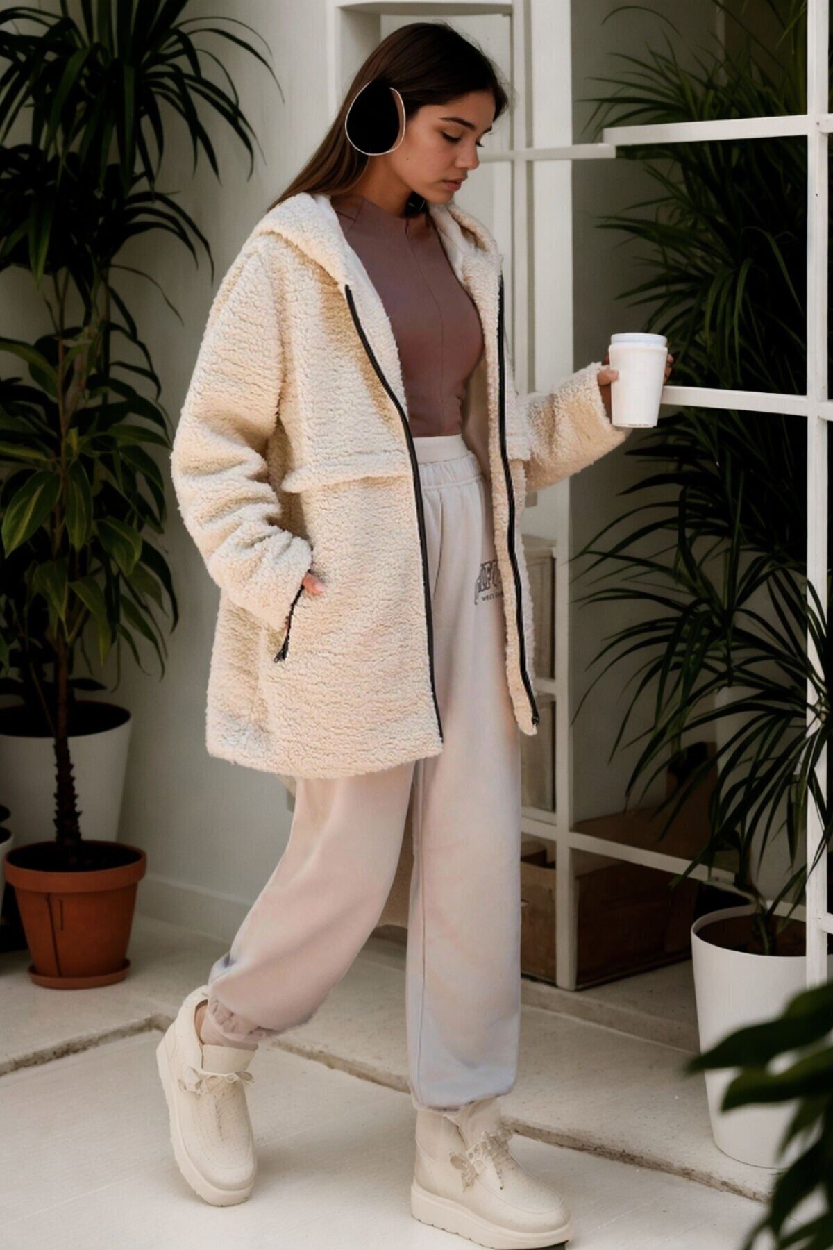 - Yetişkin kadınlar için özel olarak tasarlanmış, peluş deri biyeli kapüşonlu fermuarlı mont.; - TR menşeli kaliteli malzeme ile üretilmiş, uzun ömürlü kullanım sunar.; - Uzun kollu ve basic siluetiyle rahat bir kullanım sağlar.; - Type 2 yıkama talimatına uygun şekilde temizlenebilir, böylece montunuzu kolayca koruyabilirsiniz.; - Astarlı yapısı sayesinde soğuk havalarda ekstra sıcaklık ve konfor sunar.; - Düz deseniyle sade ve şık bir görünüm elde edilir; tarçın rengiyle dikkat çekici bir stil oluşturur.; - Kapüşonlu yaka tipi ile başınızı soğuktan korurken aynı zamanda modern bir tarz sergiler.; Bu peluş deri biyeli mont, trendy ve şık bir görünüm sunar.; Kürklü kapüşon ve fermuar detayı ile sıcak tutarken, deri biye detayıyla da dikkat çeker.; Soğuk havalarda stilinizi tamamlamak için ideal bir seçimdir.; ÜRÜN ÖZELLİKLERİ Kumaş tipi: Dokuma Renk : Ürünün Görseldeki rengi Tarçın Detay : İçi astarlı suni deri biyeli fermuarlı