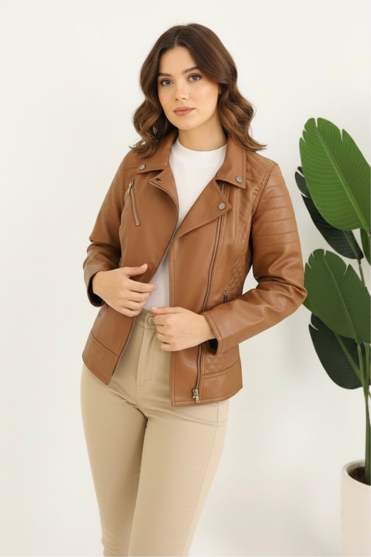 Polar Astarlı Yeni Sezon Kadın Deri Mont KS2565