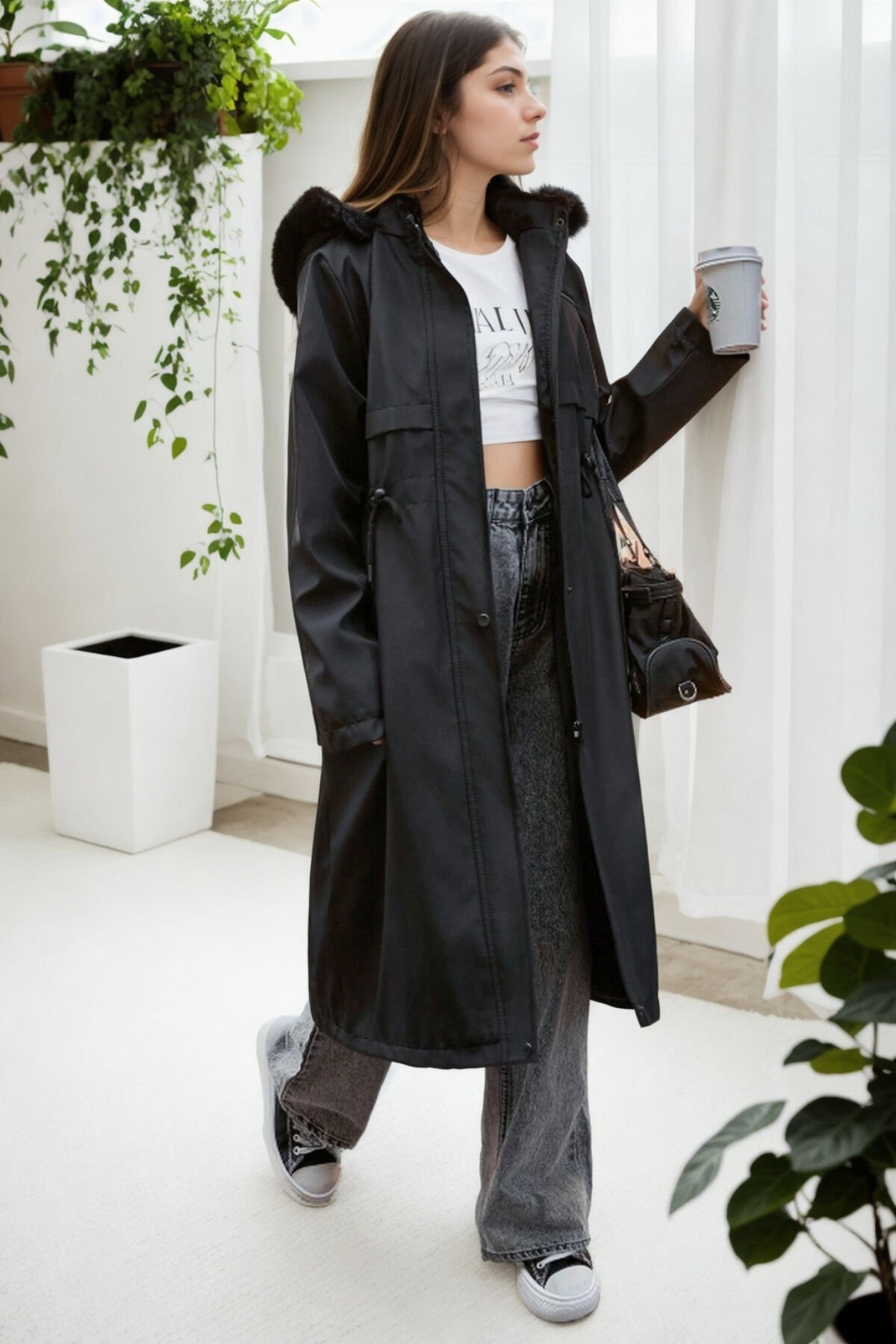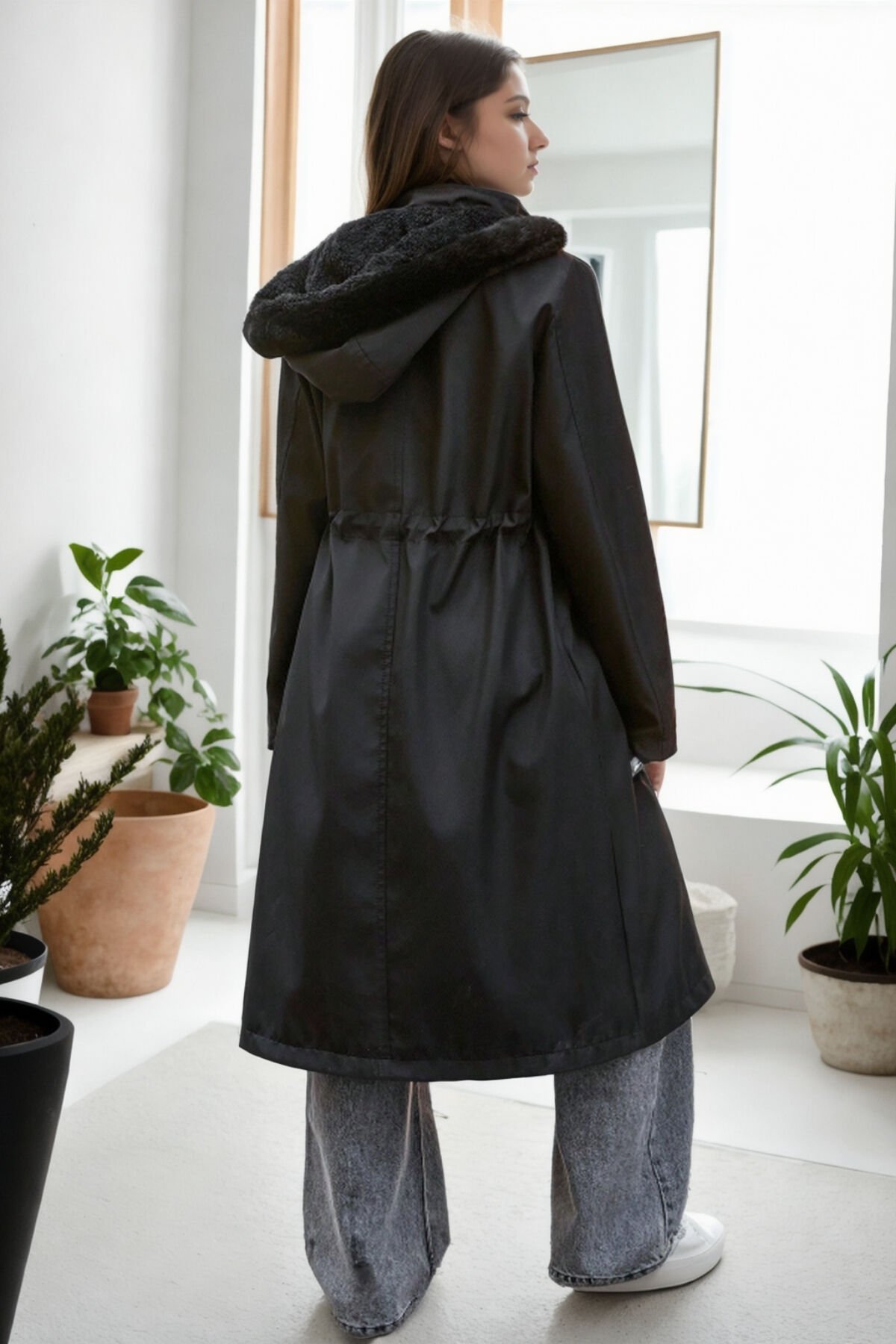 Uzun Kapüşonlu İçi Kürklü Bondik Mont