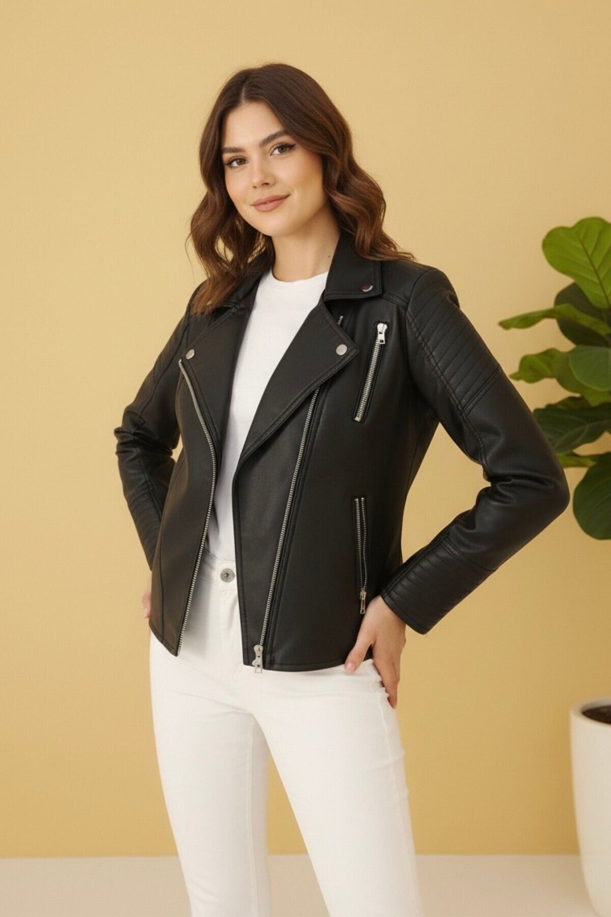 Yeni Sezon Kadın Deri İçi Polar Astarlı Mont KS2570 40 - siyah