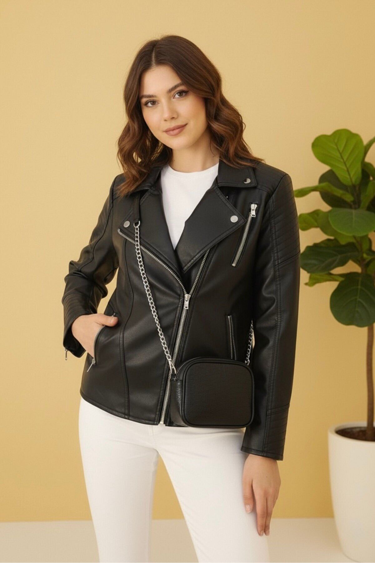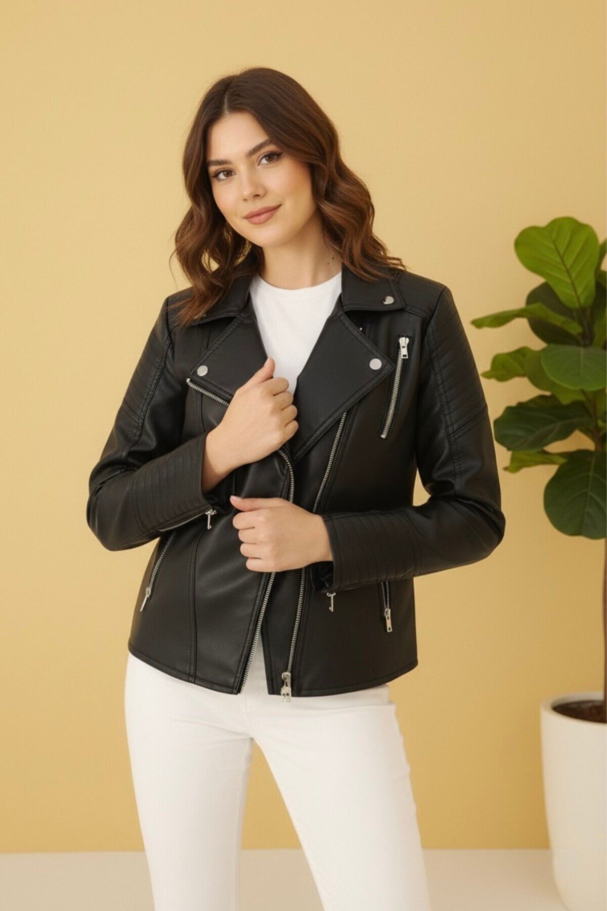 - Uzun kollu tasarımı ile kış aylarında sıcak tutan ve şık bir görünüm sunan kadın mont.; - Suni deri materyali sayesinde dayanıklılık ve modern bir stil bir arada.; - Ceket yaka detayı ile hem gündüz hem de gece kullanımına uygun rahatlık.; - Düz desen ve siyah renk seçeneğiyle kolayca kombinlenebilir, zamansız bir parça.; - Kısa boyu ile feminen silueti ön plana çıkaran ve rahat hareket etme imkanı sunan tasarım.; - Çift cepli yapısı sayesinde pratik kullanım ve eşyalarınız için ekstra alan.; - Düz dokuma kumaşı ile konforlu bir deneyim ve uzun süreli kullanım vaadi.; - Dolgusuz yapısı ile hafiflik sağlarken, kalın dokusu soğuk havalarda ekstra koruma sunar.; - Regular kalıp ile vücut hatlarınıza uyum sağlayarak rahat bir kullanım imkanı verir.; - Fermuarlı kapama şekliyle kolayca giyilip çıkartılabilir ve pratik bir kullanım sunar.; -