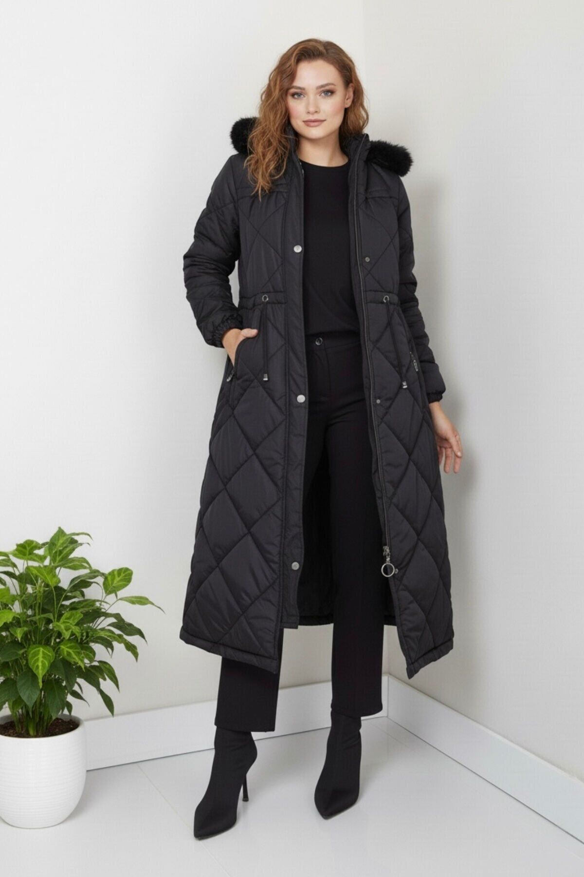- Uzun kollu tasarımı ile kış aylarında sıcak tutar ve rahat hareket etme özgürlüğü sunar.; - Polyester karışımlı materyali sayesinde dayanıklılık ve konforu bir arada yaşatır.; - Kapüşonlu yaka tipi, baş ve boyun bölgesini soğuktan korurken şık bir görünüm sağlar.; - Düz desenli lacivert rengiyle kolayca kombinlenebilir ve zamansız bir stil oluşturur.; - Uzun boyu ile vücut hatlarını sararak şık bir siluet çizer.; - Çift cepli tasarımı, küçük eşyalarınız için pratik saklama alanları sunar.; - Düz dokuma kumaşı, yumuşak dokunuşuyla konforlu bir kullanım vaat eder.; - Yoğun elyaf dolgu materyali, soğuk havalarda ekstra ısı yalıtımı sağlar.; - Rüzgar geçirmez özelliğiyle rüzgarlı günlerde bile sizi korur.; - Kalın yapısı ile soğuk havalarda bile sizi sıcak tutarken, regular kalıp rahat